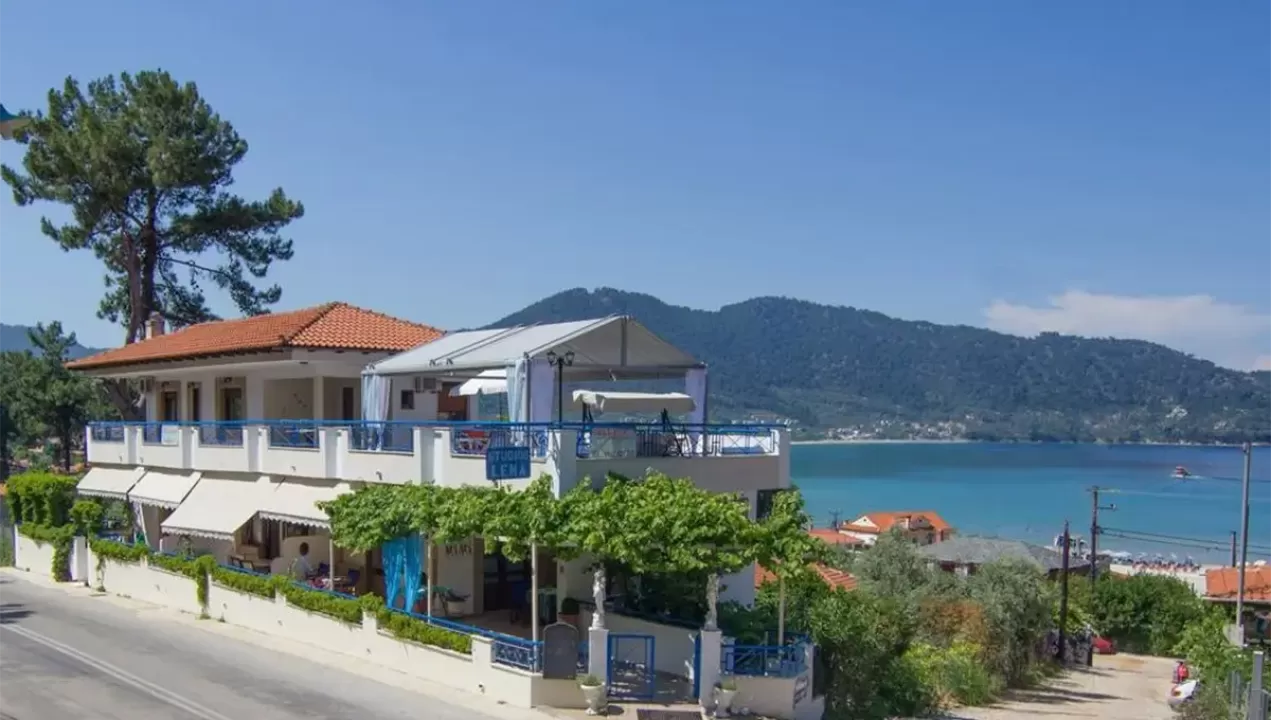 Lena Studios Skala Potamia Tasos se nalazi u centru letovališta Skala Potamia, odmah iznad Ntinas Spa hotela, od prve plaže udaljena nepunih 150 metara. Svi turistički sadržaji mesta su u neposrednoj blizini objekta, a tu je i mala luka. U svom sastavu Lena Skala Potamia ima veći broj studija i apartmana u prizemlju i na spratu, koji mogu ugostiti i do četiri osobe.