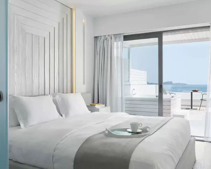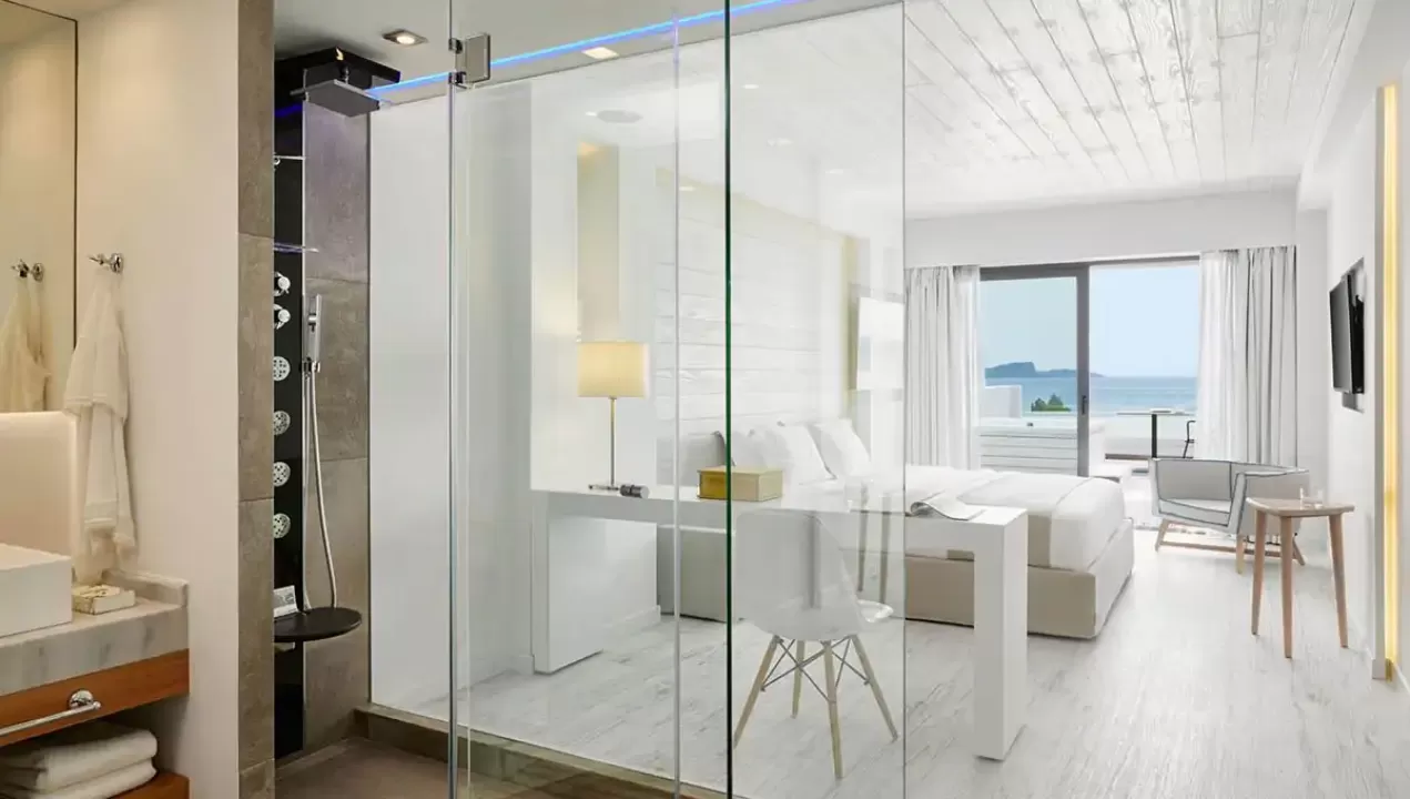 Sobe su klimatizovane i imaju centralno grejanje koje se može podešavati. Većina soba ima balkon ili terasu sa pogledom na more. U sobama se nalazi francuski ležaj i sofa na razvlačenje, a po potrebi se mogu obezbediti i dečji kreveti. Gostima su na raspolaganju sef, mini-bar, radni sto, frižider, mini frižider i aparat za kafu/čaj. Sobe su opremljene i telefonom, TV-om i bežičnim internetom. U sobama se nalaze i papuče. Kupatila sadrže tuš kabinu, kadu i đakuzi kadu, a dostupni su i fen za kosu i bade-mantil.
