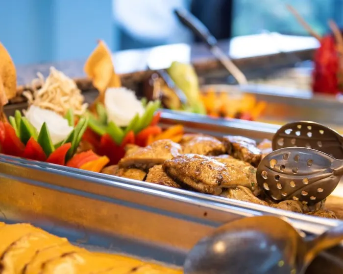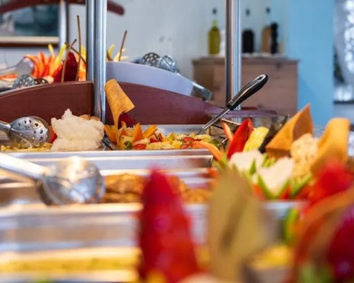 Različite opcije za obroke su dostupne, uključujući restoran sa klima uređajem, prostoriju za doručak i bar. Mogućnosti ishrane uključuju noćenje sa doručkom, polupansion i sve uključeno. Kontinentalni doručak na bazi švedskog stola, ručak i večera nude obilje ukusne raznolikosti. Vegetarijanska jela i dečji obroci mogu biti pripremljeni po zahtevu. Kompleks takođe nudi snekove. Resort nudi izbor alkoholnih i bezalkoholnih pića.