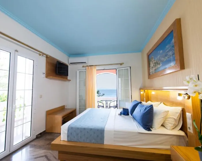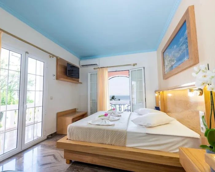 Klima uređaj i individualno podešavanje grejanja osiguravaju da sobe održavaju udobne temperature. Gosti mogu uživati u pogledu na more sa balkona ili terase. Sobe sadrže bračni krevet. Kreveti za decu i dodatni kreveti mogu biti dostupni na zahtev za mlađe goste. Sef pruža sigurno čuvanje lične imovine gostiju. Dodatni sadržaji uključuju mini frižider i aparat za čaj/kafu. Takođe je obezbeđen direktni telefonski broj, televizor sa satelitskim/kablovskim kanalima, radio i WiFi. Fen za kosu i telefon su dostupni u kupatilima, koja su opremljena tuš kabinom i kadom. U kompleksu postoje porodične sobe i sobe za nepušače.