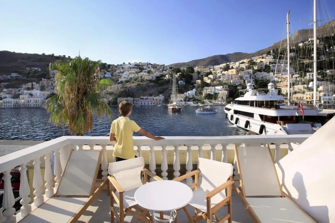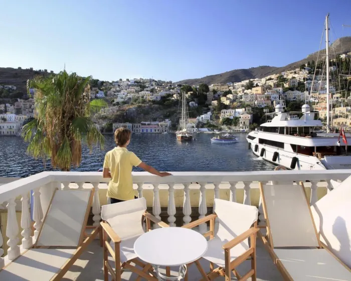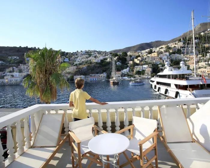 Ovaj hotel se nalazi u centru slikovitog grada Simi (Jalos) samo 50 m od centralnog trga i 200 m od glavne luke.