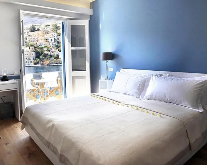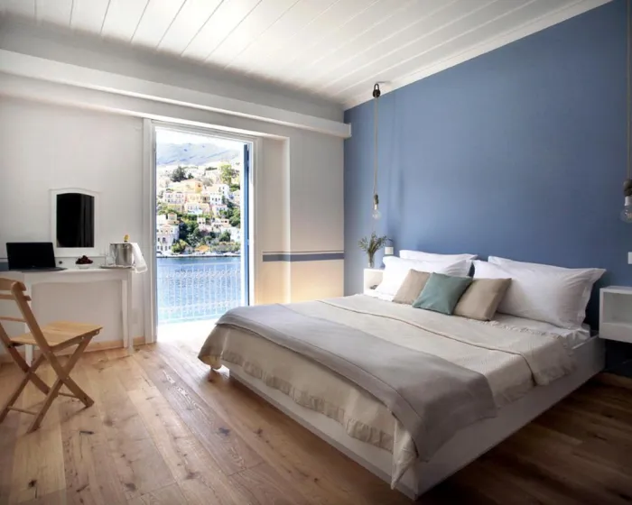 Symmetria Hotel na Simiju je luksuzni butik hotel sa 18 soba i vilom sa dve spavaće sobe udaljenom samo 1,5 kilometara, nudeći sofistic
