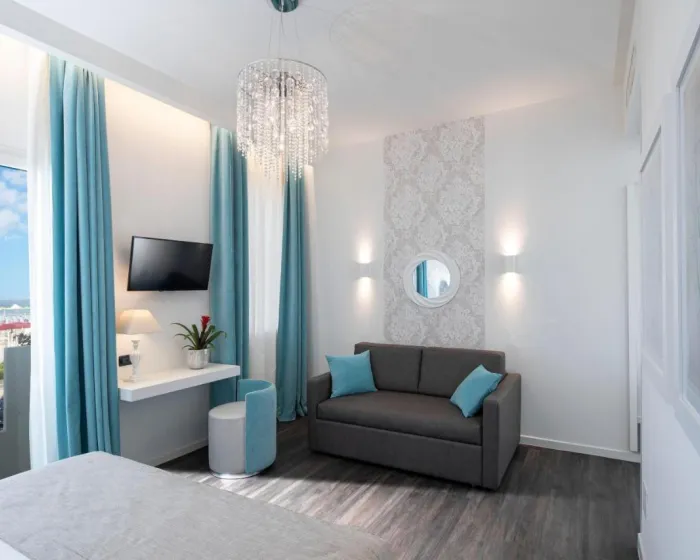 Sobe su opremljene klima uređajem i centralnim grejanjem. U većini jedinica, gosti mogu uživati u pogledu na more sa balkona ili terase. Sobe imaju krevet queen-size i kauč na razvlačenje. Dodatni kreveti mogu biti zatraženi. Sef, minibar i radni sto su takođe dostupni. Gosti će takođe pronaći mini frižider među standardnim funkcijama. Pegla je obezbeđena radi gostove udobnosti. Direktni telefon, televizor sa satelitskim / kablovskim kanalima i WiFi su takođe obezbeđeni. Kupatila su opremljena tušem, kadom i bideom. Fen za kosu, bade mantili i telefon su dostupni za svakodnevnu upotrebu. Za dodatnu udobnost u kupatilima, gostima se nude kozmetički proizvodi. Dostupne su i sobe prilagođene za osobe sa invaliditetom sa pristupačnim kupatilima. Hotel ima porodične sobe i 44 sobe za nepušače.