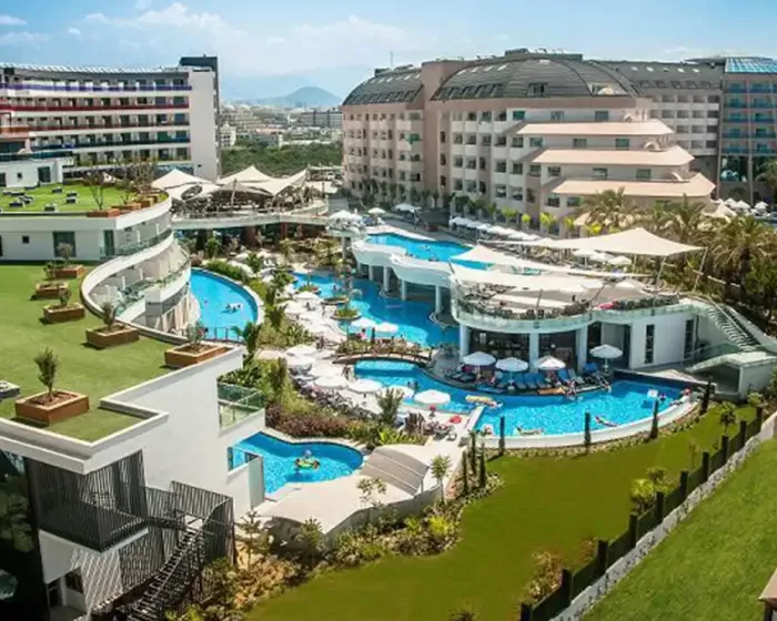 Long Beach Resort and Spa Deluxe Alanja Turska se nalazi u regiji Turkler, udaljen je oko 20 kilometara od Alanje i oko 90 kilometara od aerodroma Antalija. Hotelska privatna plaža je peščana i šljunkovita. Ležaljke, suncobrani i peškiri za plažu se ne naplaćuju. Hotel ima ukupno 773 smeštajnih jedinica rasporedjenih u devetospratnoj glavnoj zgradi, vilama i family šaletama. Usluga je ultra all inclusive.