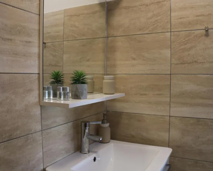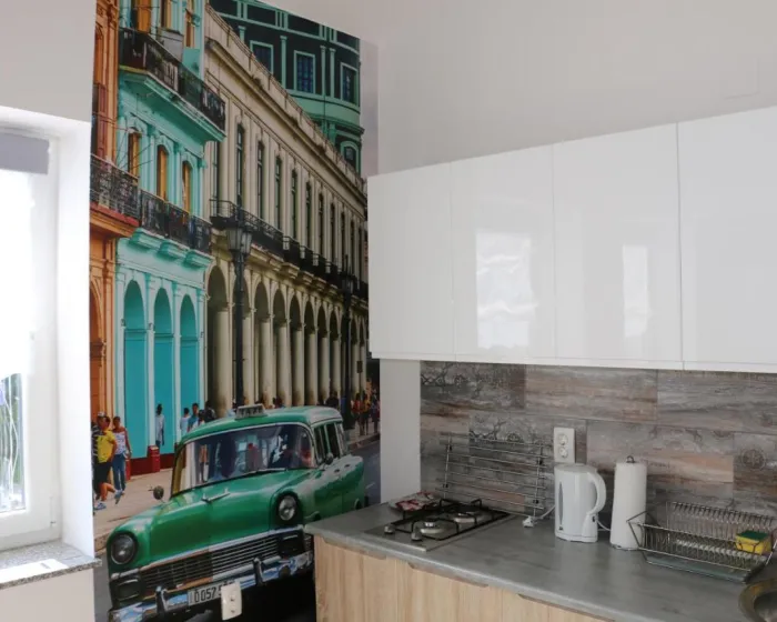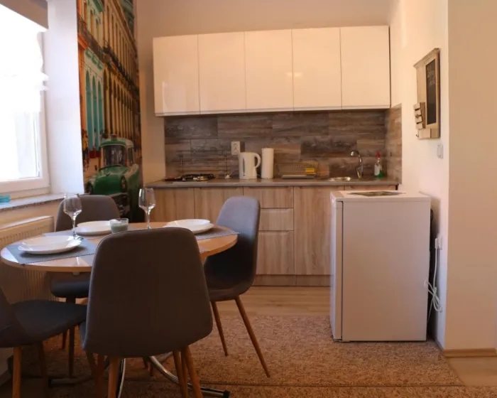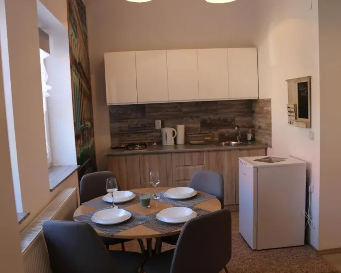 Apartman sa jednom spavaćom sobom ima dnevnu sobu sa flat-screen TV-om, potpuno opremljenu kuhinju sa tosterom i frižiderom, kao i jedno kupatilo sa papučama. Peškiri i posteljina se nude u apartmanu. Za dodatnu privatnost, smeštaj ima privatni ulaz.