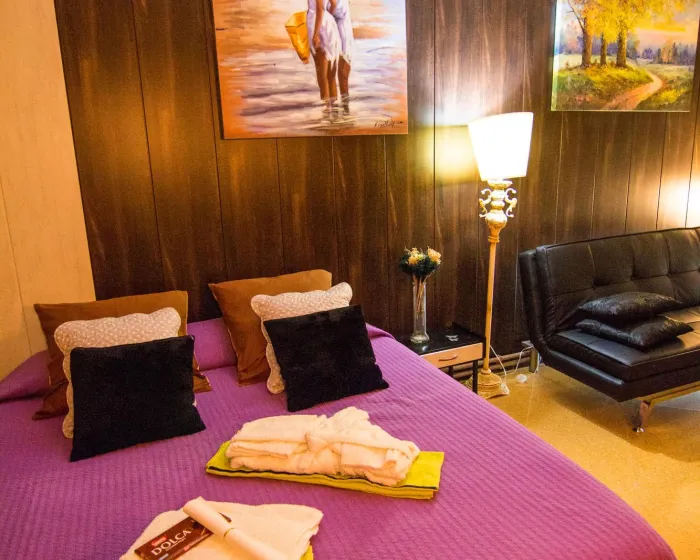 Prijuštite sebi boravak u ovoj individulano dekorisanoj vili, koja ima kamin i privatni bazen. Krevet sa izborom komfora opremljen je udobnim jorganom i Frette italijanskim posteljinama, a tu je i jedan kauč na razvlačenje. Tu je i privatni balkon ili terasa. Kuhinja je opremljena frižiderom, rernom i ringlom. Privatno kupatilo sa odvojenom kadom i tušem ima hidromasažnu kadu i tuš sa kišom.