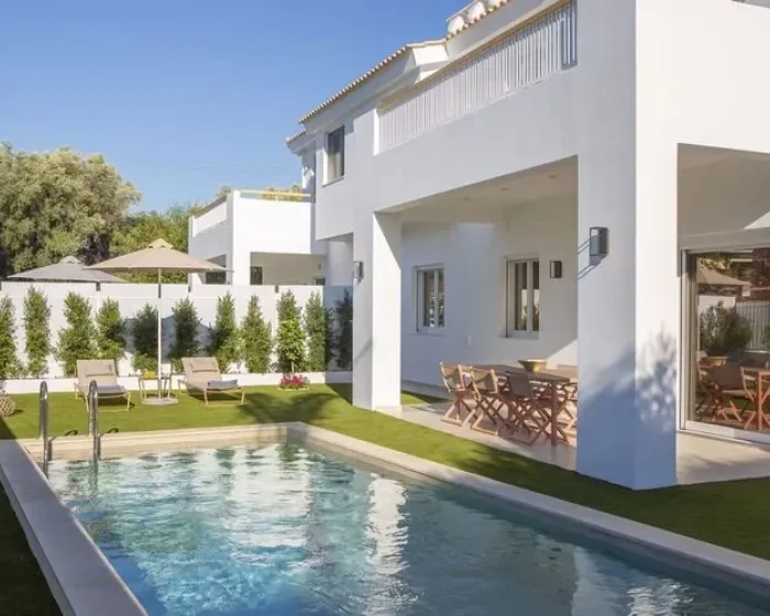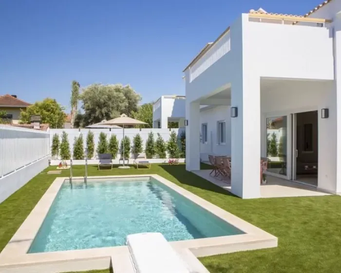 Svaka vila ima 130 m2, i predviđena je za boravak dvoje, odnosno maximum do 7 osoba. Vile poseduju po 3 spavaće sobe (jedna u prizemlju i dve na spratu, krevetac za bebu obezbeđujemo na upit), 3 kupatila, mašinu za pranje veša, peglu i dasku za peglanje, flat TV u dnevnoj sobi 55’, kompletno opremljenu kuhinju, balkon sa garniturom za sedenje, privatni bazen i ležaljke i suncobrane oko bazena, podzemnu garažu za kola sa video nadzorom (obezbeđeno je jedno parking mesto po vili).