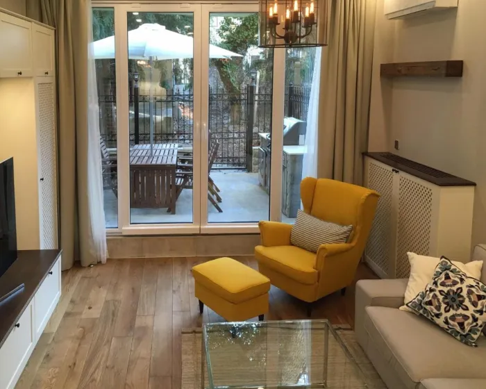U centralnom delu Sofije, na kratkoj udaljenosti od Katedrale Sveti Aleksandar Nevski i Sofijskog univerziteta Sveti Kliment Ohridski, luksuzni stan sa dvorištem i roštiljem nudi besplatan WiFi, klima uređaj i kućne sadržaje poput mašine za pranje sudova i aparata za kafu. Gosti mogu koristiti balkon i spoljni kamin. Objekat je za nepušače i nalazi se na 1,7 km od Ivana Vazova teatra.