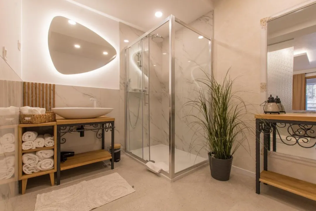 Svaka jedinica ima privatno kupatilo sa tušem, klima uređajem, TV-om sa ravnim ekranom i frižiderom.