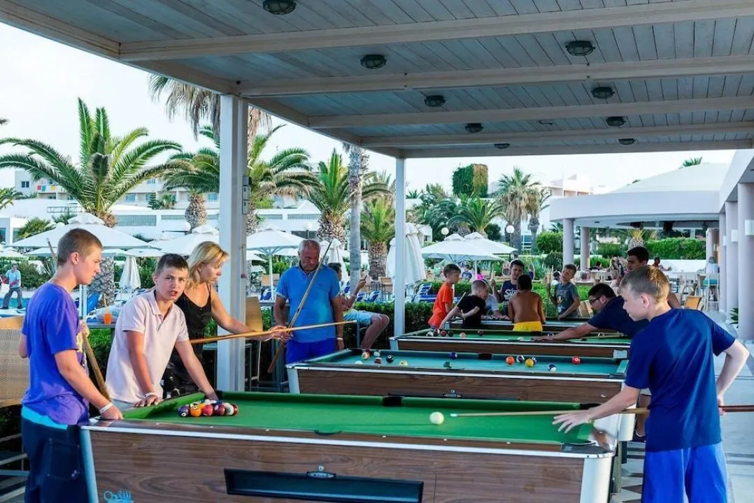 Prostrano područje bazena, koje uključuje 7 spoljnih bazena, je odlično mesto za opuštanje i osvežavajuće kupanje. Čak i u hladnim danima, plivanje je uvek opcija u unutrašnjem bazenu. Deca mogu da pljuskaju u jednom od 3 dečija bazena. Tobogan i osvežavajuće piće u baru pored bazena su savršen način za opuštanje. Lepo vreme se može uživati na terasi. Resort nudi obiman program spoljnih sportova i slobodnog vremena, uključujući boćanje, odbojku na plaži i košarku. Gosti takođe mogu uživati u tenisu, golfu i tenisu za veslanje uz nadoknadu. Vodeni sportovi koji se nude uključuju vodene aerobik. Vožnja skuterom na vodi i vožnje bananom su organizovane od trećih lica. Kompleks nudi brojne unutrašnje sportove, uključujući teretanu, stoni tenis, pikado, kalicifikacije i aerobik ili, uz nadoknadu, bilijar. Postoji zona za wellness sa saunom i hamamom i, uz dodatnu naknadu, spa i kozmetički salon. Zabavni sadržaji uključuju klub za decu, dečji disko i živu muziku.
