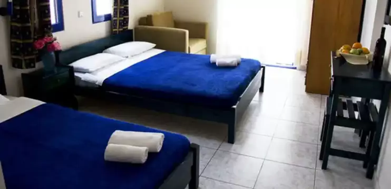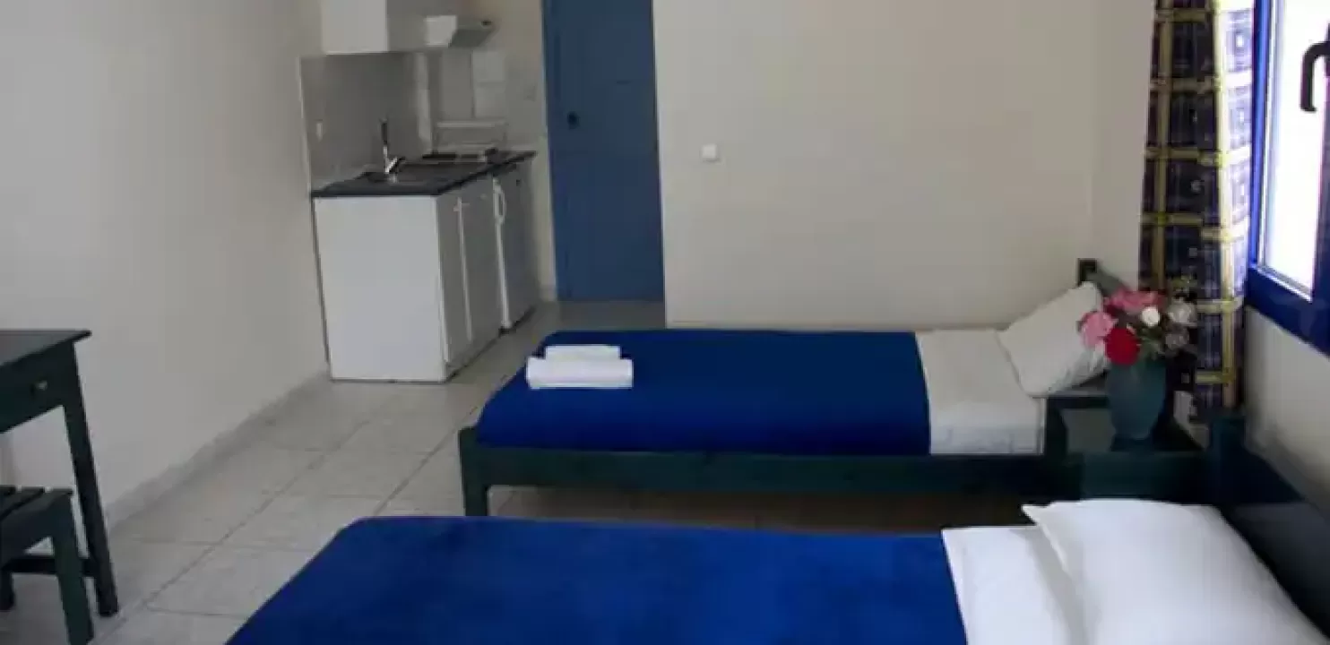 Sve smeštajne jedinice namenjene su za boravak od 2 do 4 osobe i nalaze se u prizemlju i na prvom spratu. Svaki studio ima čajnu kuhinju, kupatilo/wc, fen, terasu, TV, WiFi internet (uz doplatu na licu mesta, od 1€ dnevno po aparatu) i klima uredjaj (uz doplatu na licu mesta, od 5€ dnevno). Preporučuje se za miran, porodični odmor. Sve sobe su renovirane 2018. (nov enterijer, nameštaj i kuhinje).