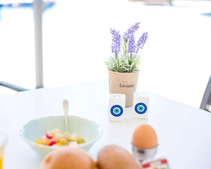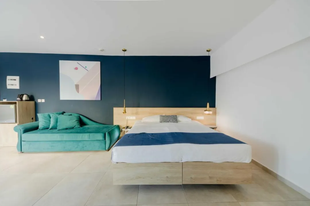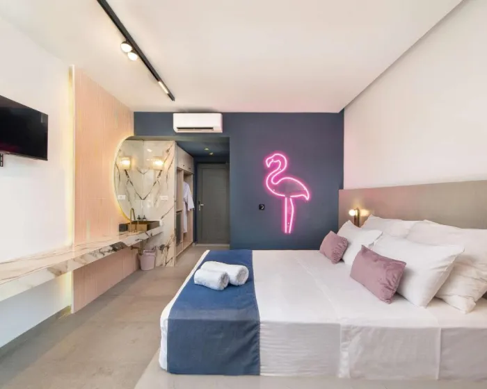 Klima uređaj omogućava održavanje prijatnih temperatura u sobama. U većini smeštajnih jedinica, gosti mogu uživati u pogledu na more sa balkona ili terase. Sobe imaju bračni krevet, krevet queen size ili sofu. Krevetić za decu i dodatni kreveti mogu biti zatraženi za mlađe goste. Takođe su dostupni sef i minibar. Dodatne pogodnosti uključuju frižider i čaj/kafu aparat. Telefon, TV i WiFi (bez dodatne naknade) pružaju sve neophodno za udoban odmor. Gosti će takođe pronaći papuče u svojim sobama. Fen za kosu i telefon su dostupni u kupatilima, koja su opremljena tušem. Hotel ima porodične sobe i sobe za nepušače.
