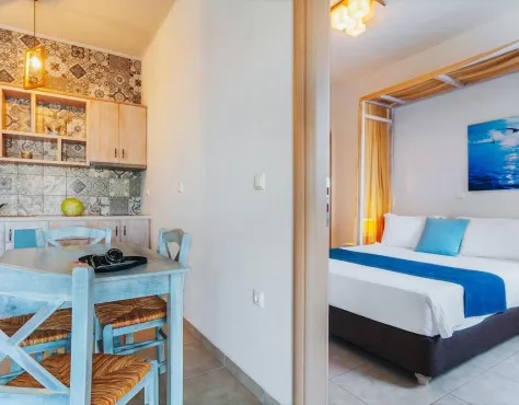 Sobe su opremljene klima uređajem. Gosti mogu uživati u pogledu na more sa balkona ili terase. Sobe sadrže bračni krevet. Kuhinja sa frižiderom, aparatom za kafu/čaj i rernom je takođe standardna oprema. Sobe sadrže TV sa ravnom ekranom i WiFi (bez dodatne naplate) koji omogućava gostima da ostanu povezani i zabavljaju se. Kupatila su opremljena tuš-kadom i fenom za kosu. Kozmetički proizvodi i selekcija peškira pružaju dodatnu udobnost u kupatilima.