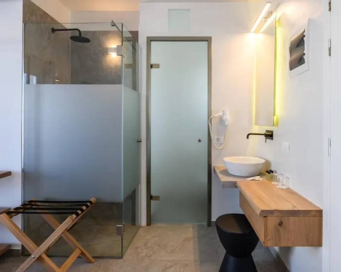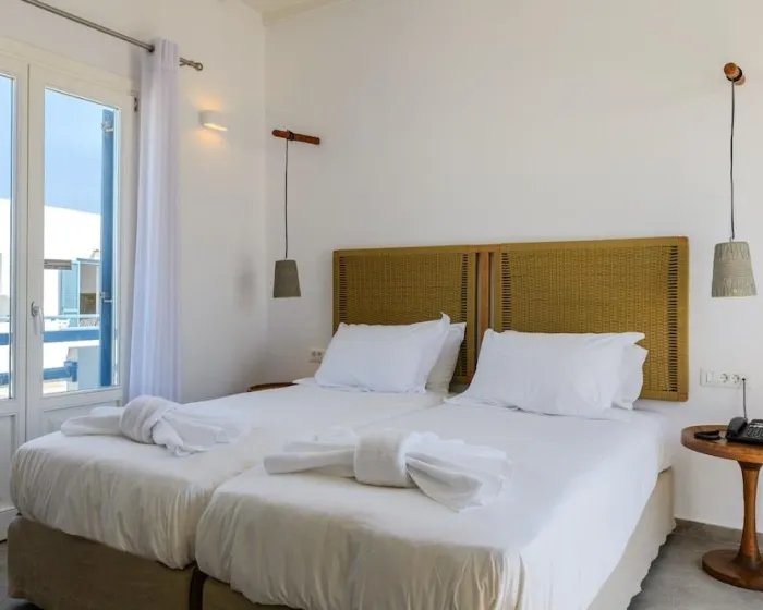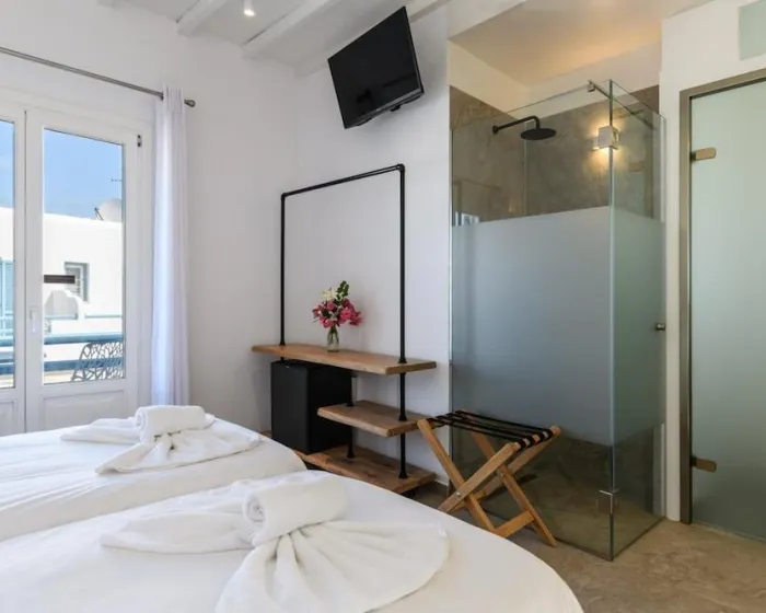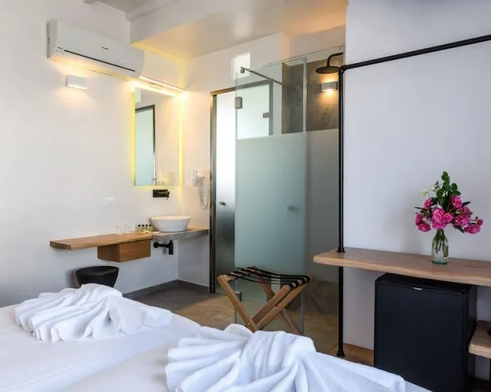Klima uređaj i centralno grejanje osiguravaju da sobe održavaju udobnu temperaturu. Gosti mogu uživati u pogledu na more sa balkona ili terase. Sobe uključuju bračni krevet. Dodatni kreveti mogu biti zatraženi. Sadržaji uključuju frižider, sef i WiFi (bez dodatne naplate). Tuš i kada su uključeni u kupatila. Hotel ima sobe za nepušače.