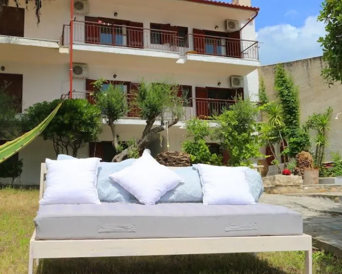 Ovaj apartmanski hotel se nalazi u Agia Paraskevi, odmah pored plaže.