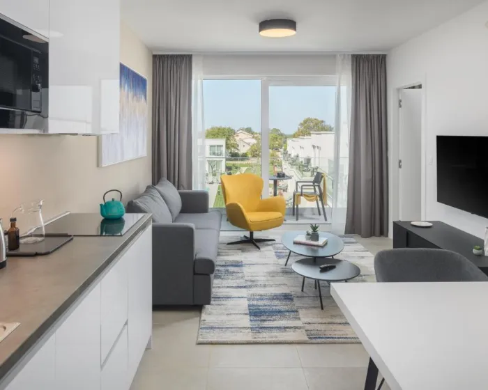 Svi apartmani su opremljeni klima uređajem, prostorom za sedenje, flat-screen TV-om sa streaming uslugama, kuhinjom, trpezarijom, sefom i privatnim kupatilom sa tušem, papučama i fenom za kosu. Takođe su dostupni mašina za sudove, mikrotalasna pećnica, toster i čajnik. Svaki apartman dolazi sa posteljinom i peškirima.