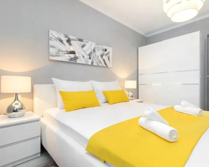 Klimatizovan apartman sadrži 1 spavaću sobu, dnevni boravak, potpuno opremljenu kuhinju sa tosterom i aparatom za kafu, i 1 kupatilo sa tušem i fenom za kosu. Peškiri i posteljina su obezbeđeni u apartmanu. Objekat nudi pogled na grad.