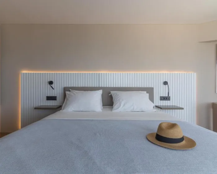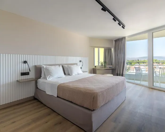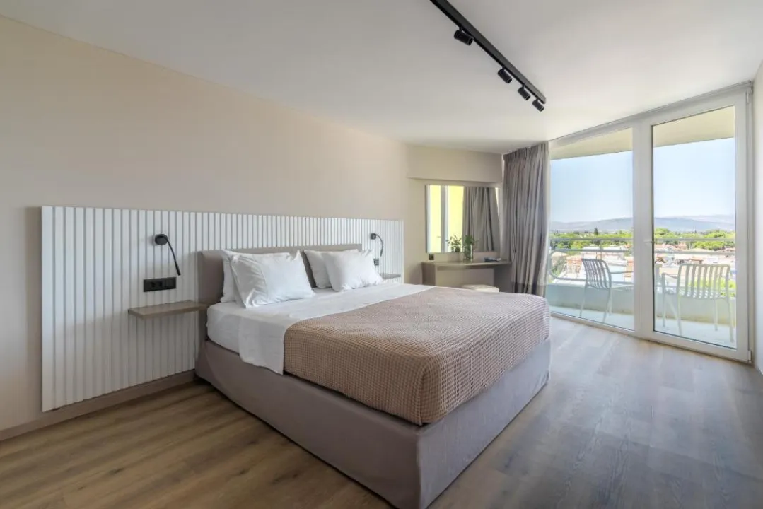 Sve sobe su klimatizovane i imaju centralno grejanje. Neke sobe imaju balkon ili privatnu terasu sa pogledom na more. Sobe su opremljene francuskim, queen ili king size krevetom, kao i pomoćnim ležajem ili sofom. Na zahtev se može obezbediti dečiji ili dodatni krevet. U sobama se nalaze sef, mini-bar i radni sto. Standardna oprema uključuje i frižider. Gostima su dostupni direktna telefonska linija, TV i besplatan WiFi. Kupatila su opremljena tušem, kadom i fenom za kosu. Hotel raspolaže porodičnim i sobama za nepušače.