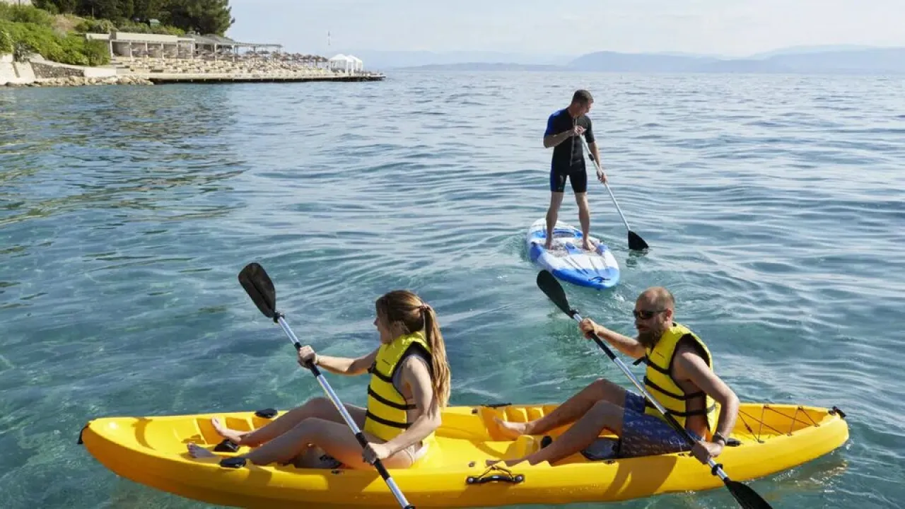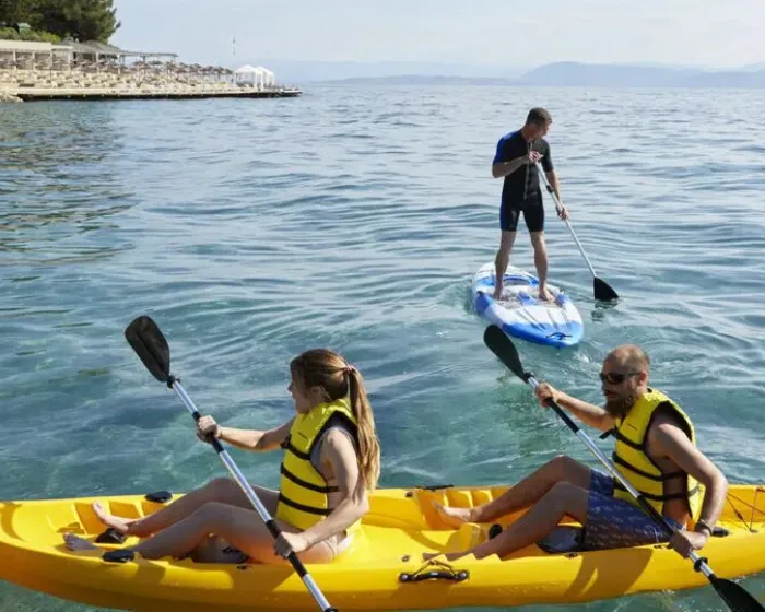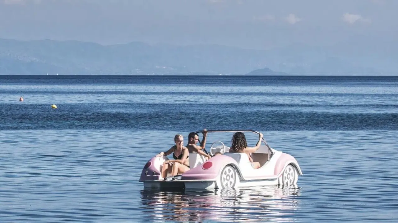 Gosti mogu uživati u tri otvorena bazena, dok je za decu predviđen poseban deo za kupanje. U okviru bazenskog kompleksa nalaze se i hidromasažna kada, tobogan i bar pored bazena. Na sunčanoj terasi dostupni su ležaljke i suncobrani. Za ljubitelje sporta odmaralište nudi bogat program aktivnosti na otvorenom, uključujući biciklizam, planinski biciklizam, tenis, boćanje, padel i džoging. Na raspolaganju su i razni sportovi na vodi, kao što su pedaline, vožnja banana čamcem, kanu, katamaran, ronjenje s disaljkom, aerobik u vodi i akvafitnes. Uz doplatu su dostupni skijanje na vodi, jet-ski, vožnja motornim čamcem i kajak.