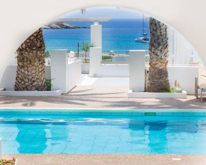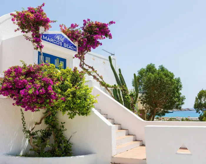 Marcos Beach Hotel se nalazi na odličnoj lokaciji, na oko 150 metara udaljenosti od čuvene plaže Mylopotas i na oko 1500 metara od centra grada Hore Ios, dok je luka udaljena približno 4 km. Odličan hotel.
