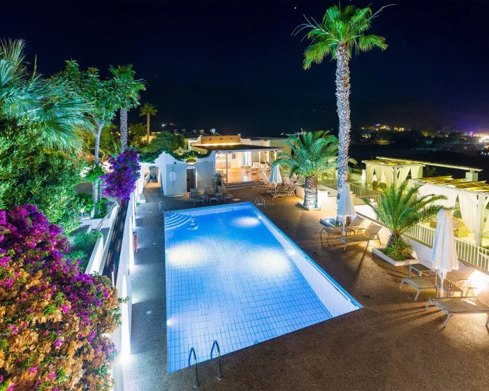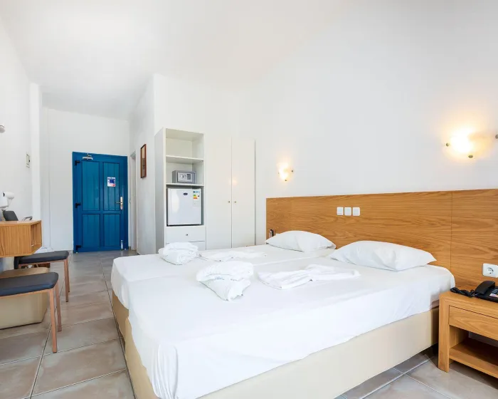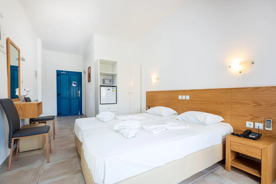 Sve sobe su klimatizovane, a većina ima balkon ili terasu sa pogledom na more. Opremljene su bračnim krevetom, uz mogućnost dodatnog ležaja ili dečjeg krevetića na zahtev. U sobama se nalaze sef, frižider, telefon, TV sa satelitskim kanalima i besplatan Wi-Fi. Kupatila su opremljena kadom ili tušem i fenom za kosu. Dostupne su i sobe prilagođene osobama sa invaliditetom. Sve sobe su nepušačke.