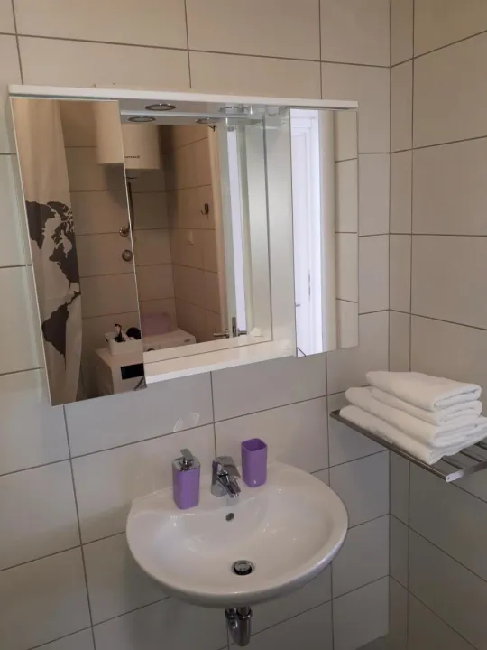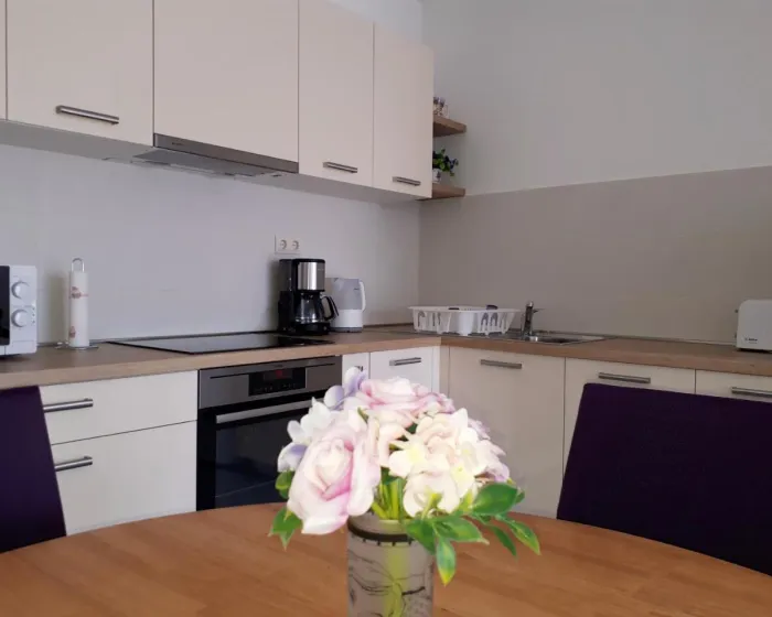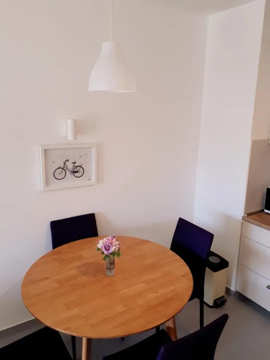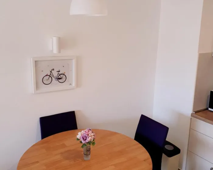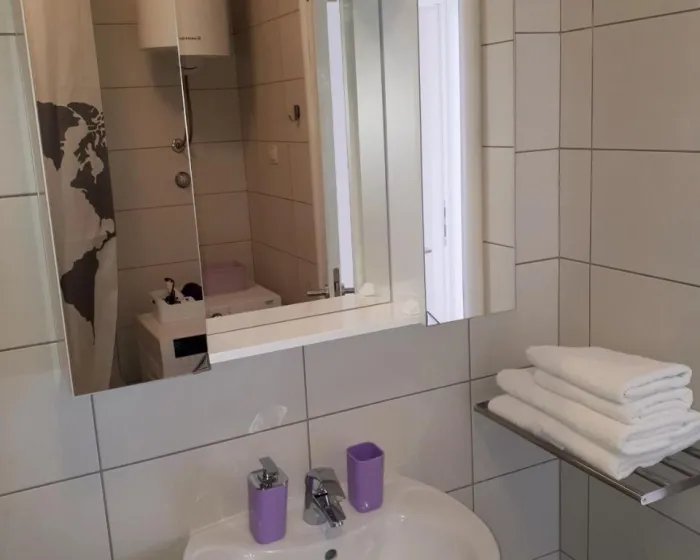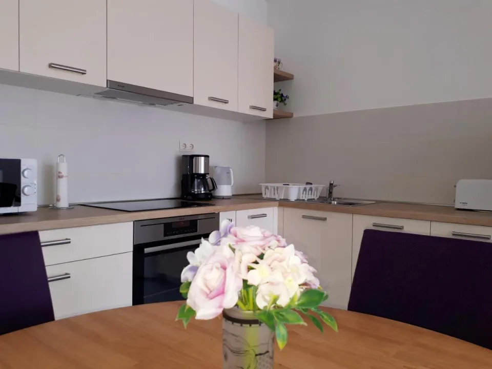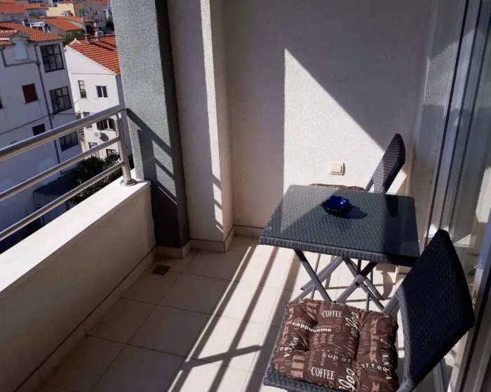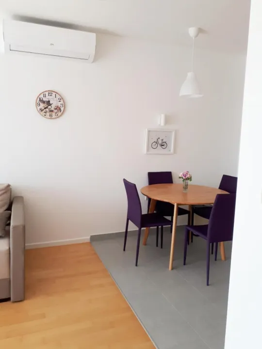 Klimatizovani apartman sastoji se od 1 spavaće sobe, dnevnog boravka, potpuno opremljene kuhinje sa mašinom za sudove i aparatom za kafu, i 1 kupatila sa bideom i fenom za kosu. Peškiri i posteljina obezbeđeni su u apartmanu. Radi dodatne privatnosti, smeštaj ima privatni ulaz.