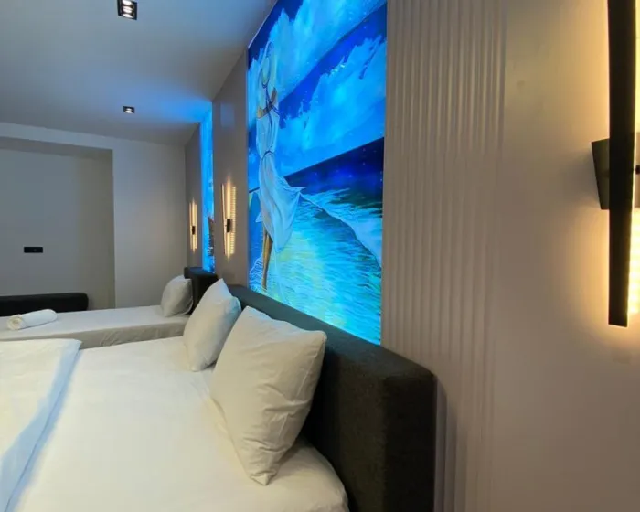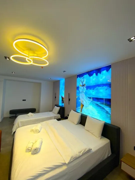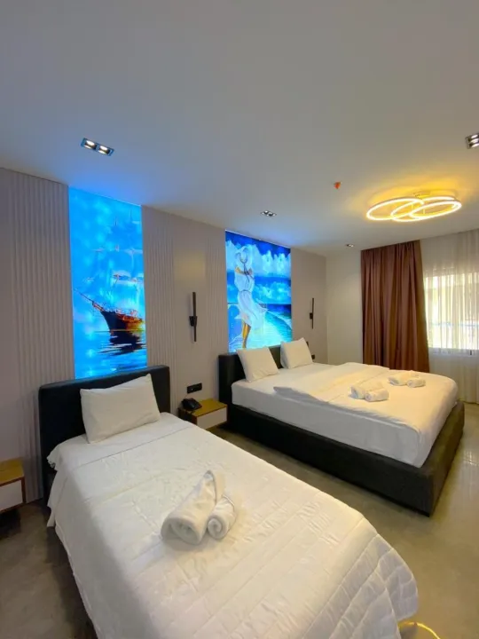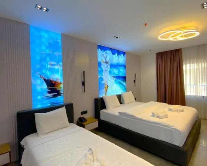 Hotel će gostima obezbediti klimatizovane sobe sa radnim stolom, čajnikom, frižiderom, mini barom, sefom, flat-screen TV-om, terasom i privatnim kupatilom sa tušem. Sve sobe imaju garderober.