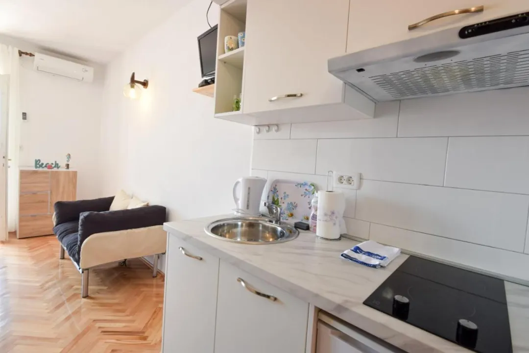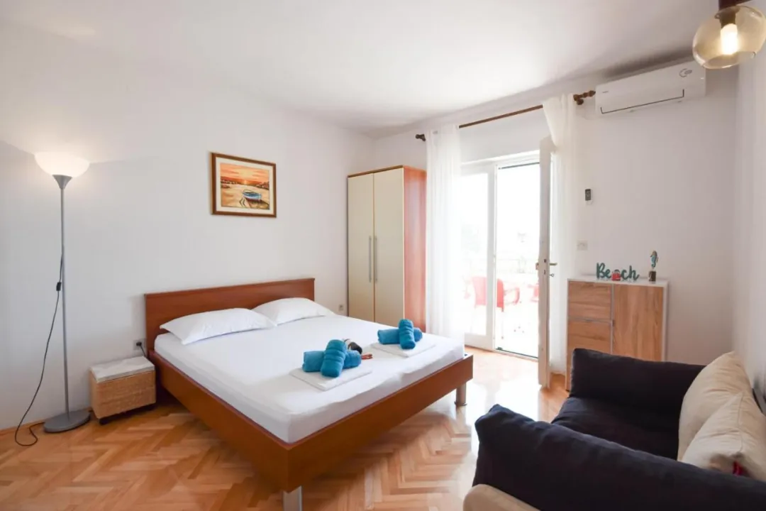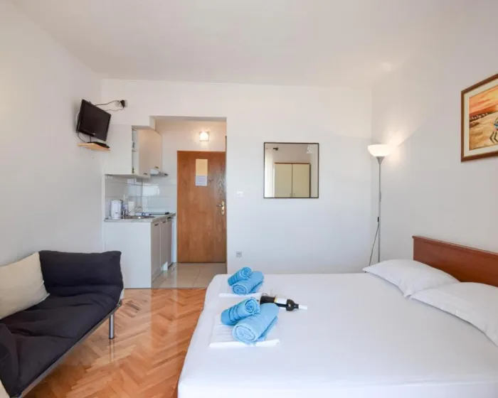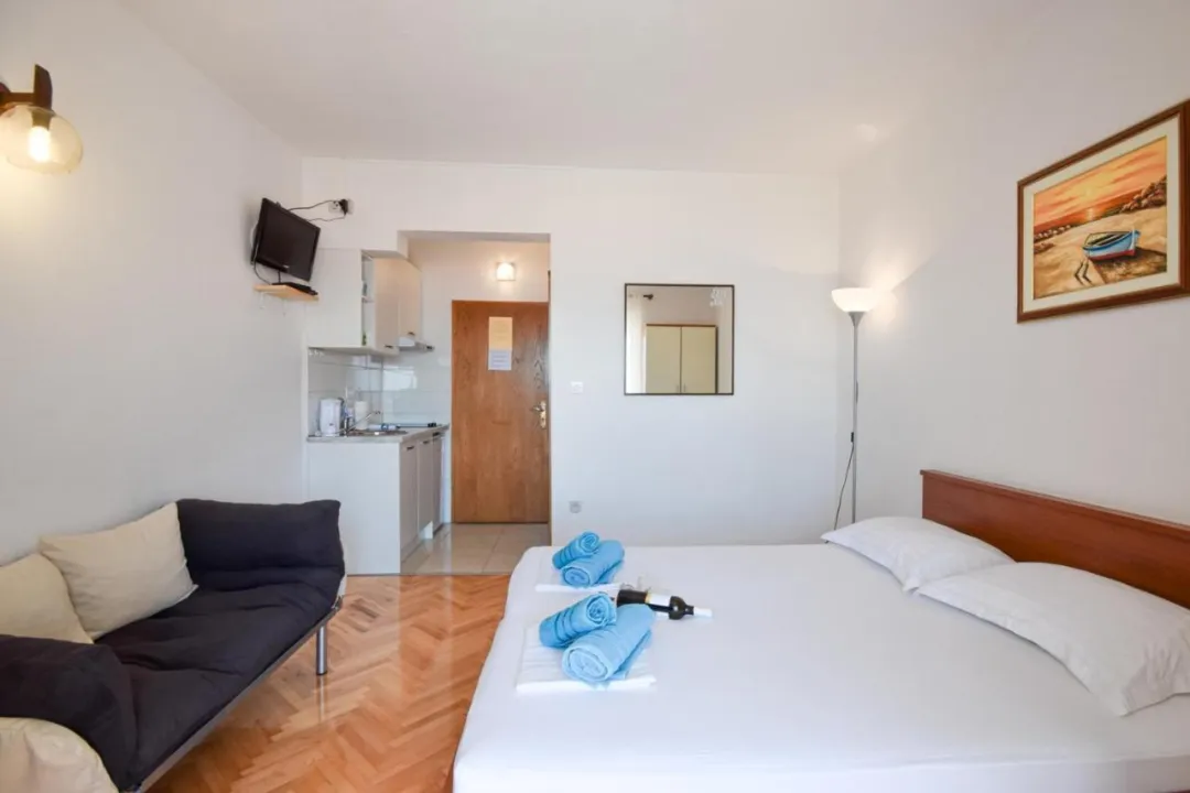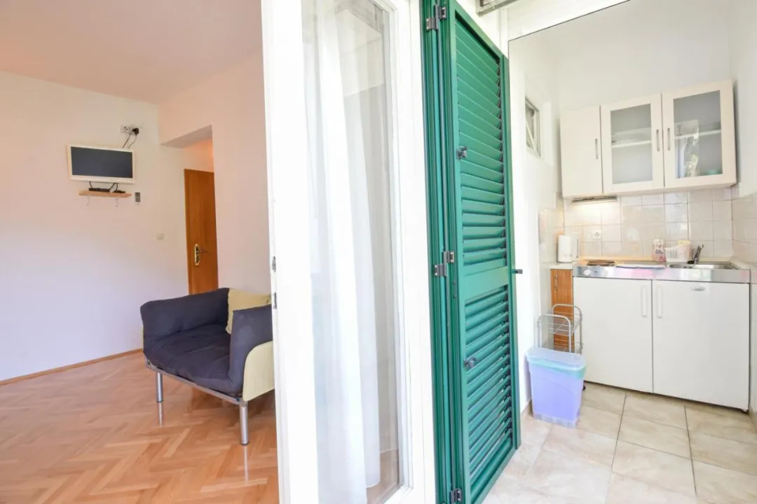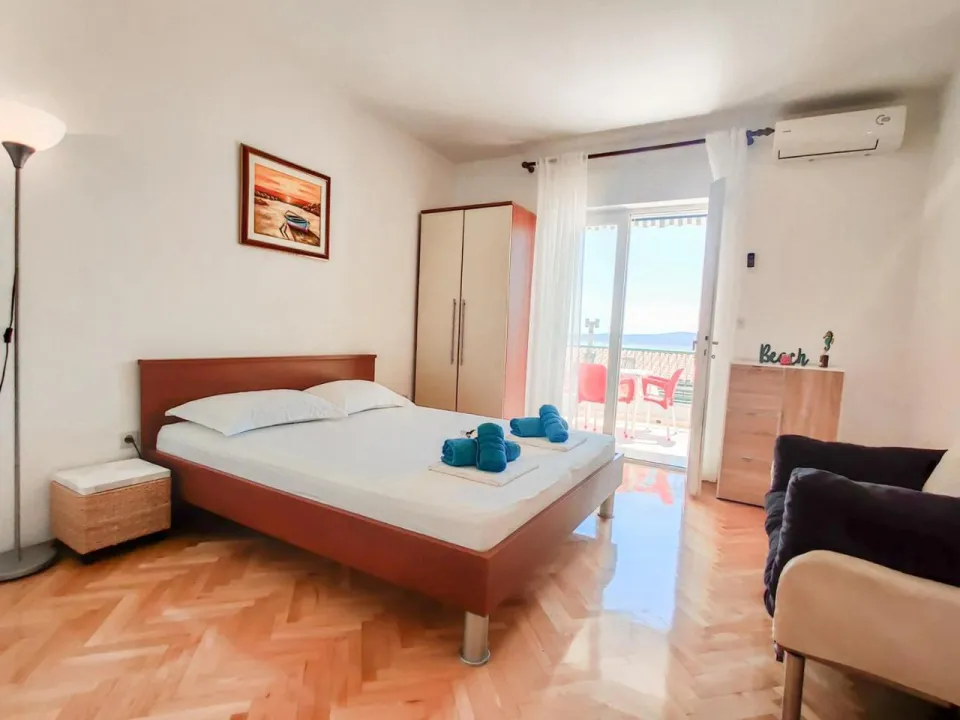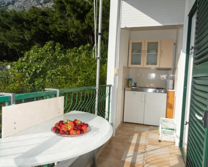 Sa tišinom i pogledom na ulicu, studio u prizemlju sa terasom se nalazi u Brelima, na 31 kilometar od Plavog jezera.