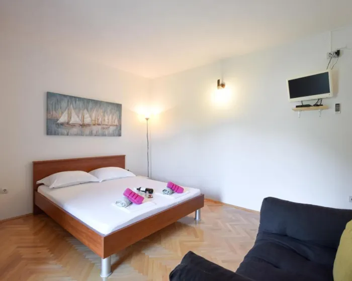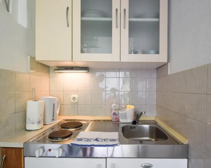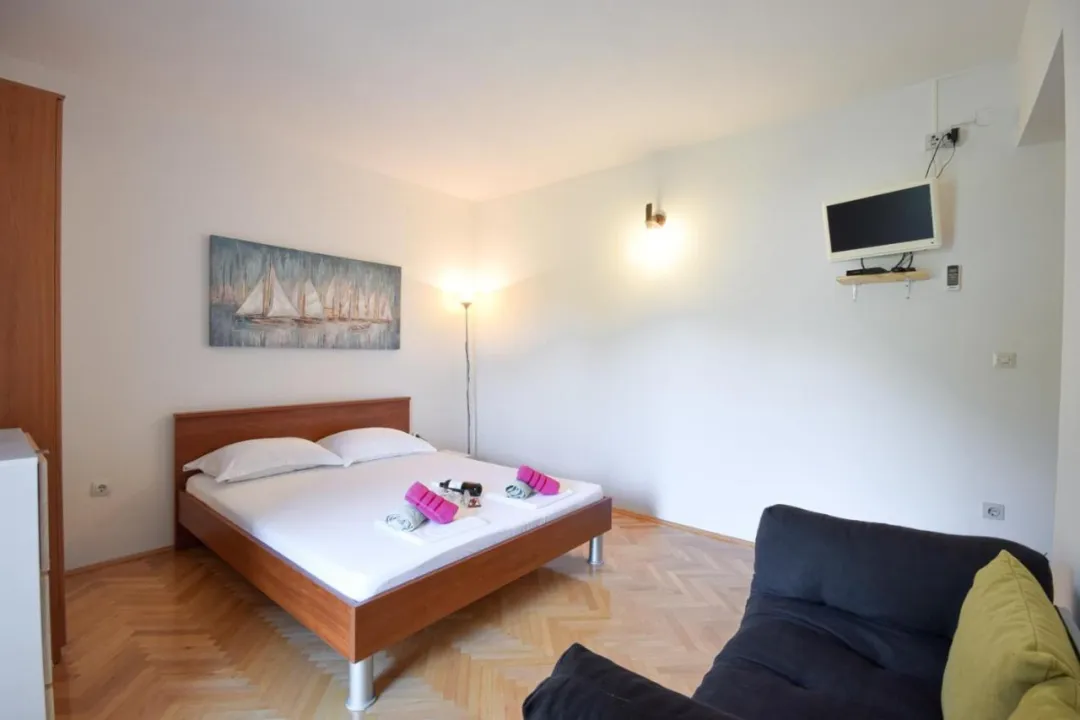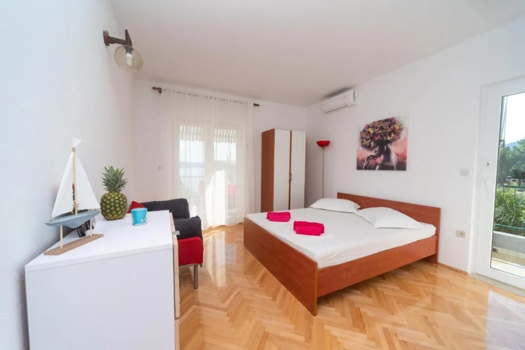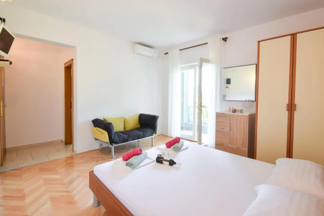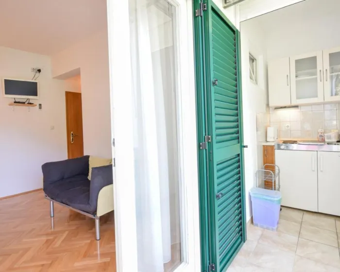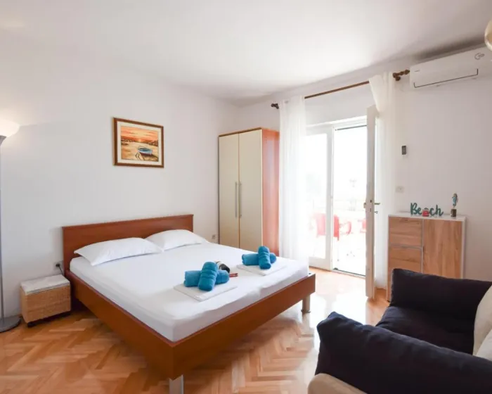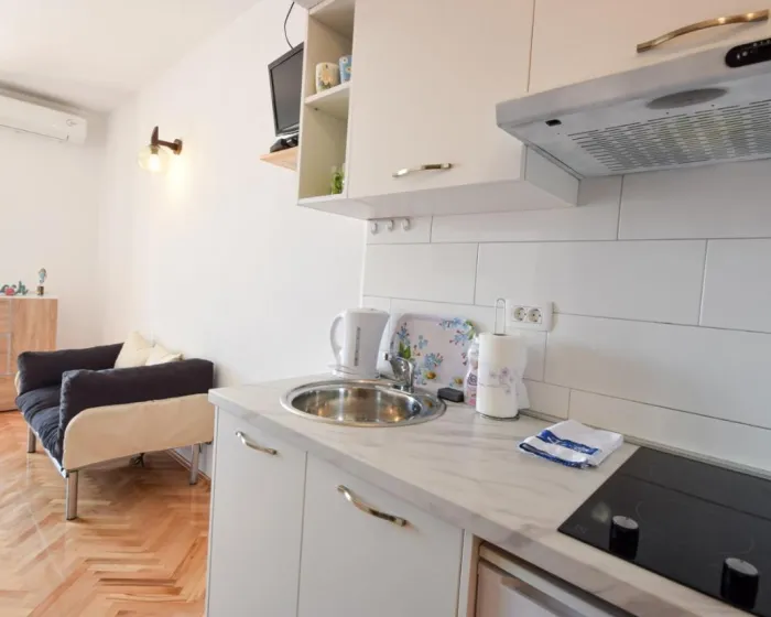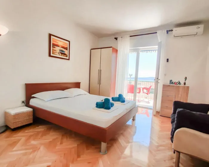 Sa tišinom i pogledom na ulicu, studio u prizemlju sa terasom se nalazi u Brelima, na 31 kilometar od Plavog jezera.