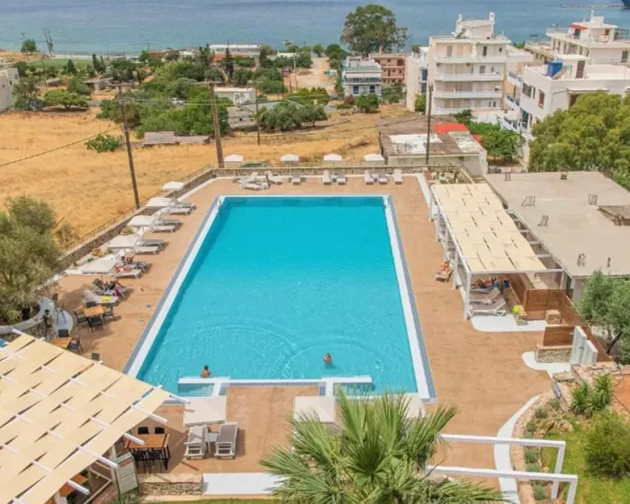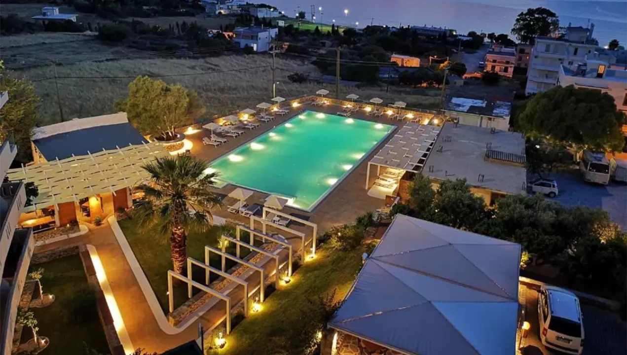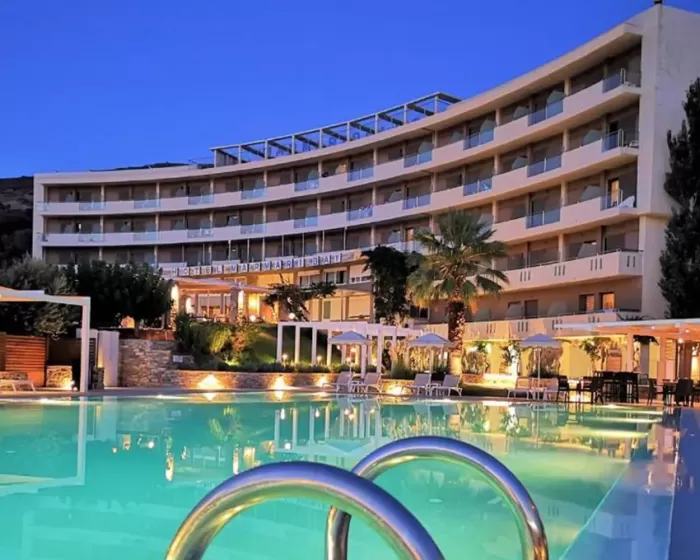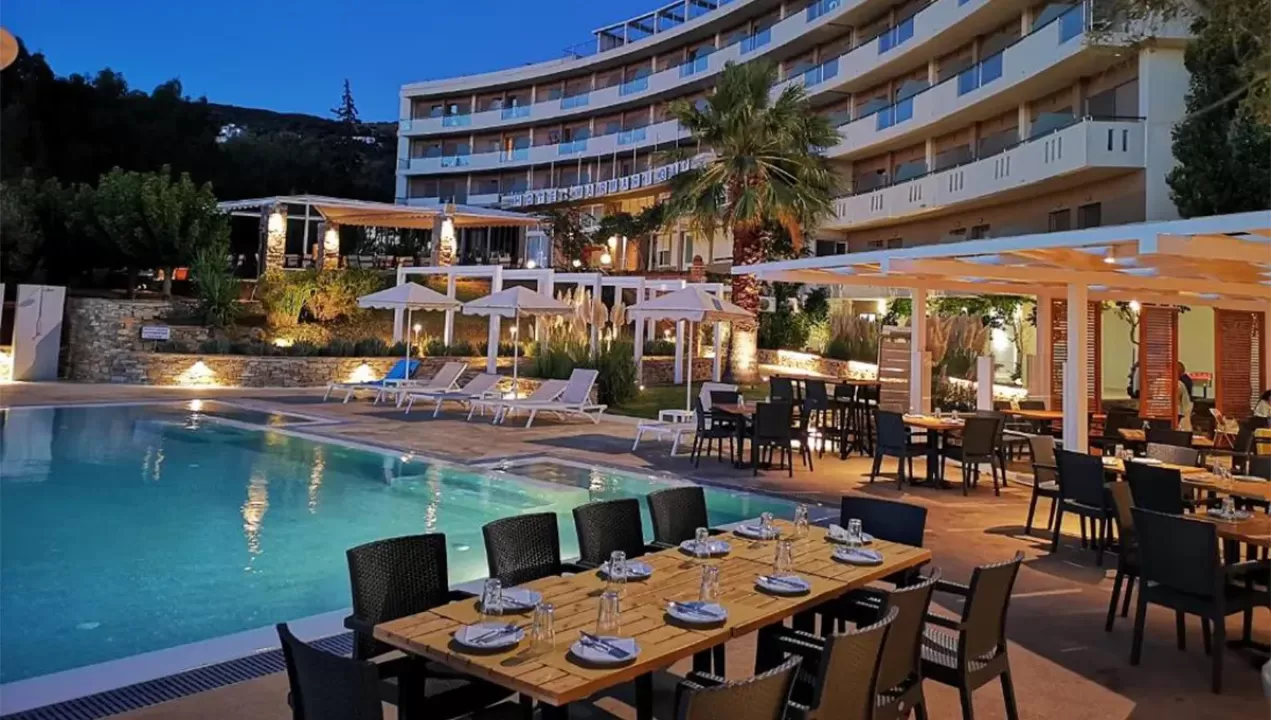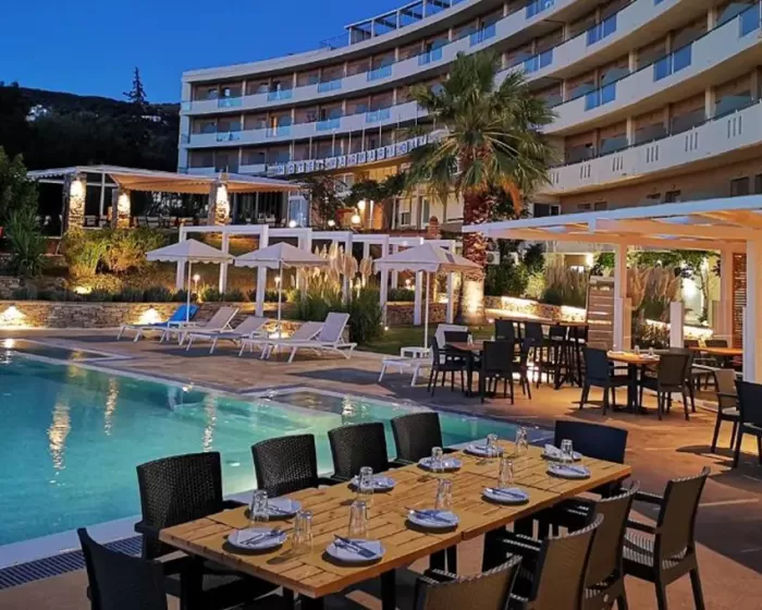 Marmari Bay Hotel Evia se nalazi u letovalištu Marmari, na oko 110 kilometara udaljenosti od grada Halkide. Sam hotel je smešten na uzvišenju sa prelepim pogledom na Marmari zaliv, u mirnom okruženju, a do luke i centra letovališta ima oko 350 metara udaljenosti. Za goste je obezbedjen besplatni prevoz do obližnjih plaža Zastani, Kokini i Fijias.