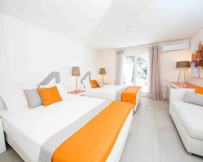 Klima uređaj i centralno grejanje osiguravaju da sobe održavaju prijatne temperature. Većina soba ima balkon ili terasu kao standardni sadržaj. Sobe imaju bračni krevet i sofu. Dodatni kreveti mogu biti zatraženi. Sef, minibar i radni sto takođe su dostupni. Dodatne pogodnosti uključuju frižider i čajnu/kafenu stanicu. Dalji sadržaji uključuju mašinu za pranje veša i set za peglanje. Direktno biranje telefonom, ravni televizor sa satelitskim kanalima, radio i WiFi (bez dodatne naknade) pružaju sve što je potrebno za udoban odmor. Usluga usluge korak po stepenima obezbeđuje dodatnu udobnost gostima u večernjim satima. Papuče su uključene. Fen za kosu, bade mantili i telefon su na raspolaganju u kupatilima za svakodnevnu upotrebu. Za dodatnu udobnost u kupatilima, gostima su ponuđeni kozmetički proizvodi. Kompleks poseduje porodične sobe i sobe za nepušače.