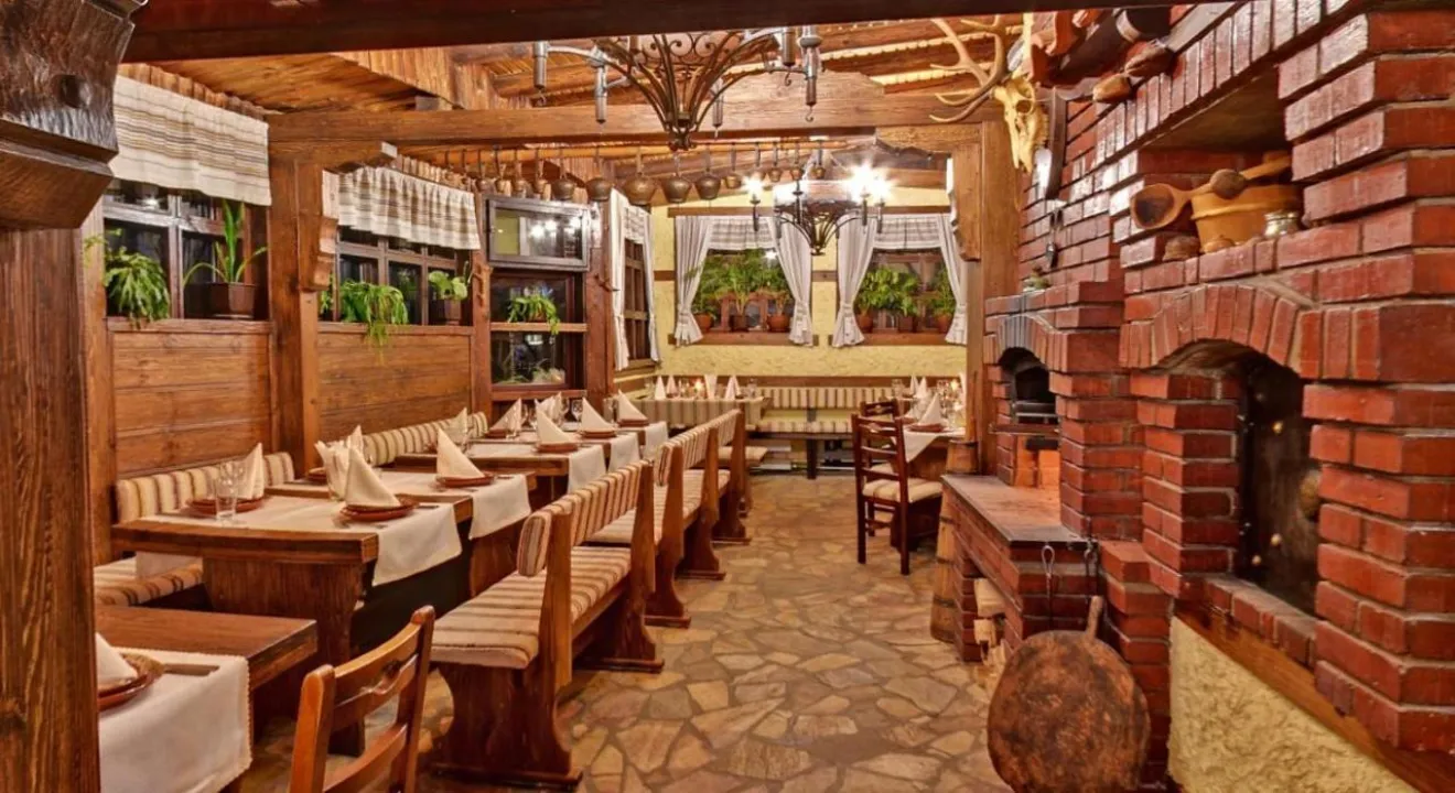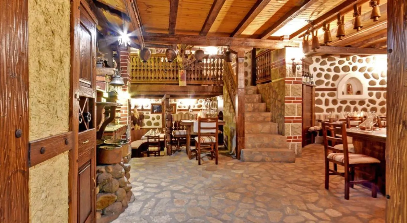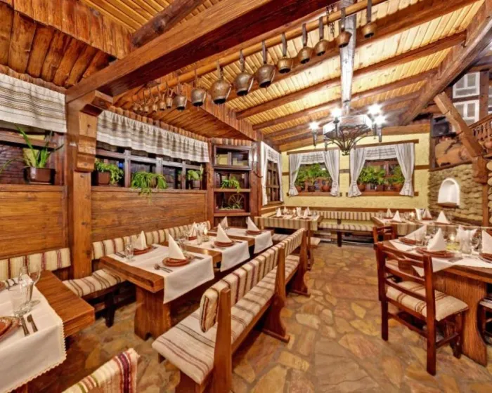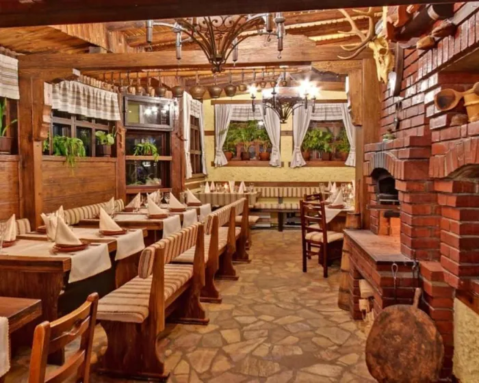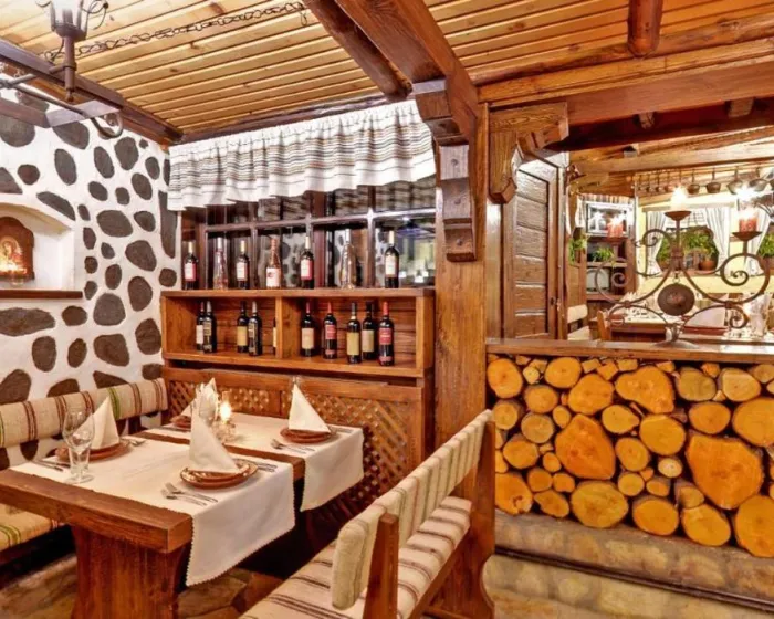 U ušuškanoj taverni u ponudi su regionalna i nacionalna jela, neka od kojih se pripremaju na otvorenom uglju. Lokalne opcije su takođe dostupne za doručak, uključujući domaći jogurt, džem i borovnice i jagode iz obližnje šume.