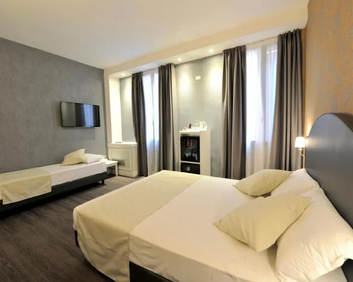 Ovaj hotel dočekuje goste u Ferari. Osoblje na recepciji je ljubazno i srećno odgovara na sva pitanja. Na raspolaganju su usluge čuvanja prtljaga i sef. Bežični internet omogućava gostima da ostanu povezani tokom odmora. Hotel nudi niz sadržaja za goste sa invaliditetom. Dizalo i prilagođeni sadržaji za osobe sa invaliditetom su dostupni. Nekoliko prodavnica, uključujući supermarket i suvenirnicu, su odlični za kupovinu ili razgledanje. Vrt pruža dodatni prostor za odmor i opuštanje na otvorenom. Dodatni sadržaji uključuju TV salu. Gosti koji dolaze kolima mogu parkirati svoja vozila na parkingu. Dodatne usluge i sadržaji uključuju uslugu obezbeđenja 24 sata, poslugu u sobi, uslugu buđenja, vešeraj i frizera. Fax mašina je na raspolaganju za poslovne potrebe gostiju. Sobe su opremljene klima uređajem i centralnim grejanjem. Sobe imaju bračni krevet i sofu na razvlačenje. Sef i minibar su takođe dostupni. Satelitska televizija, alarmni sat i WiFi (bez dodatne naknade) su obezbeđeni. Kupatila su opremljena tušem i kadom, kao i fenom za kosu. Kupatila su takođe opremljena kozmetičkim proizvodima i izborom peškira. Hotel ima porodične sobe i sobe za nepušače. Lepo vreme se može uživati na terasi. Copyright GIATA 2004 - 2024. Višejezično, napaja www.giata.com za klijenta br. 124971. U objektu se nalazi bar. Obilan doručak garantuje odličan početak dana.