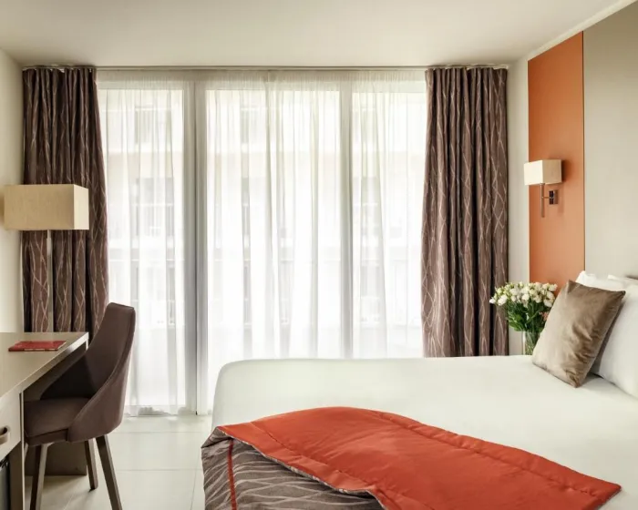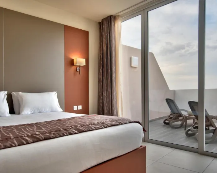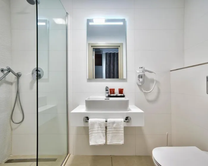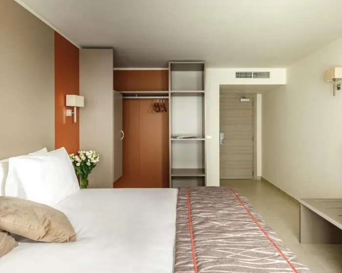 Sve sobe su klimatizovane i imaju centralno grejanje. Većina jedinica ima balkon ili terasu sa pogledom na more. Sobe su opremljene bračnim ležajem, queen-size ležajem ili sofom na razvlačenje. Kreveti za decu i pomoćni ležajevi dostupni su na zahtev. U sobama se nalaze sef, mini bar i radni sto. Dodatne pogodnosti uključuju mini frižider i aparat za čaj/kafu. Gostima je na raspolaganju i set za peglanje, kao i presa za pantalone. Za udobnost i zabavu obezbeđeni su telefon, flat-screen TV sa satelitskim kanalima i bežični internet. Kupatila imaju tuš i fen za kosu. Mogu se rezervisati sobe prilagođene osobama sa invaliditetom. Hotel poseduje porodične sobe i sobe za nepušače.