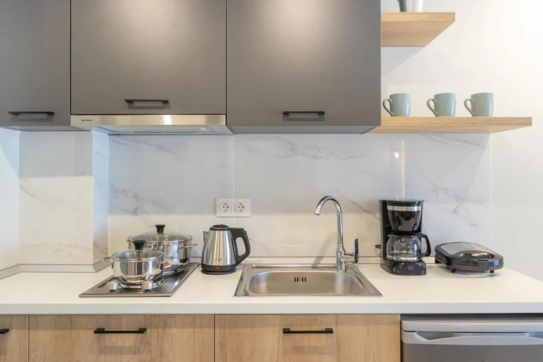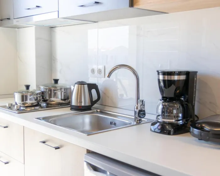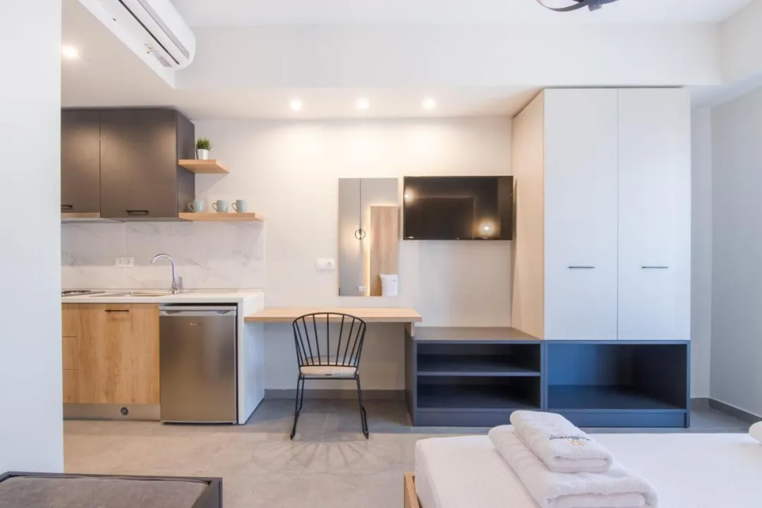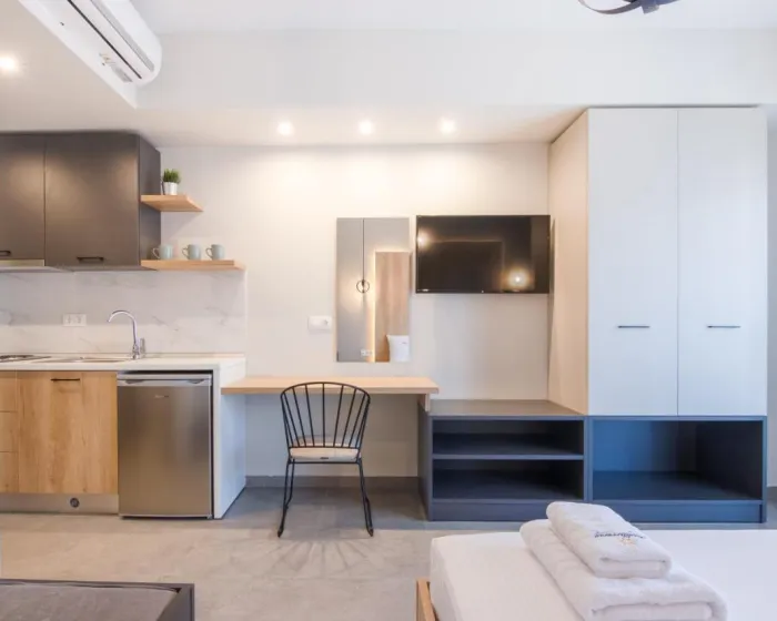 Smeštaj je opremljen klima uređajem, potpuno opremljenom kuhinjicom, flat-screen TV-om i privatnim kupatilom sa tušem, fenom za kosu i besplatnim toaletnim priborom. Frižider i posuđe takođe su ponuđeni, kao i aparat za kafu. Sve jedinice imaju ormar.