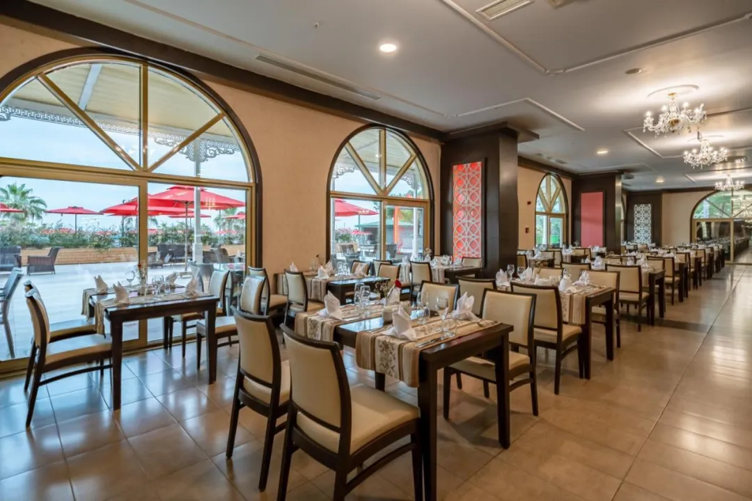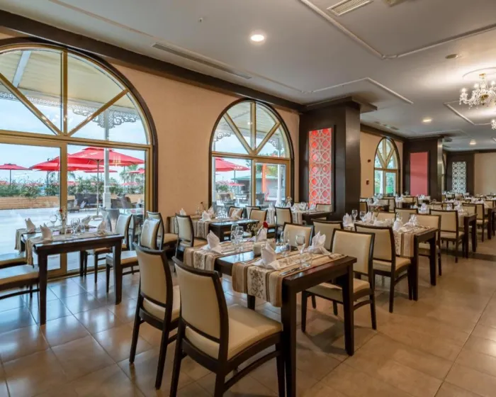Restoranske sadržaje uključuju trpezariju, trpezariju za doručak, kafić, bar i hotelski bar. Nekadim restoran pruža visoke stolice za decu. Sveuključeno se može rezervisati. Dijetetski obroci, obroci bez glutena i dečiji obroci mogu biti pripremljeni na zahtev. Sviuključeno putnici uživaju u posebnim dodacima, uključujući snekove. Za goste su uključeni izbor alkoholnih i bezalkoholnih pića, kao i internacionalnih brendova.