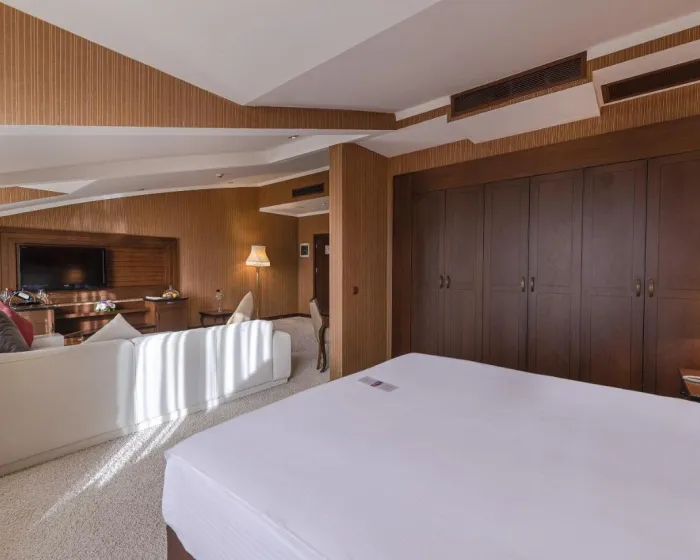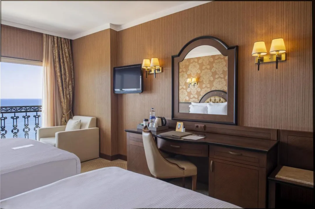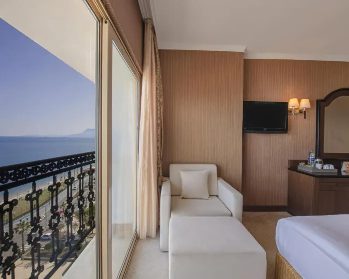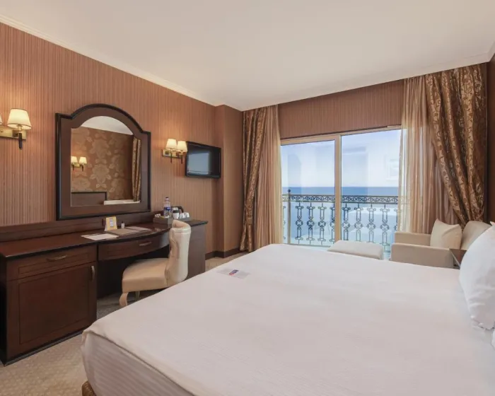 Klima uređaj i podesivo centralno grejanje osiguravaju da sobe održavaju udobne temperature. Gosti mogu opustiti i uživati u pogledu na more sa balkona ili privatne terase nekih soba. Sve sobe su popločane i imaju bračni krevet, veliki bračni krevet ili kauč na razvlačenje. Krevetac za decu može biti zatražen za mlađe goste. Takođe su dostupni sef, minibar i radni sto. Dodatne mogućnosti uključuju mini frižider i aparat za kafu/čaj. Pegla je obezbeđena radi praktičnosti gostiju. Direktni telefonski poziv, TV i WiFi (bez dodatne naplate) takođe su dostupni. Papuče su uključene. Kupatila su opremljena tušem i kadom. Fen za kosu, ogledalo, bade mantili i telefon su obezbeđeni. Kozmetički proizvodi i pozadinska muzika pružaju dodatnu udobnost u kupatilima. Gosti mogu takođe rezervisati sobe prilagođene za osobe sa invaliditetom sa pristupačnim kupatilima. Resort ima porodične sobe i sobe za nepušače.