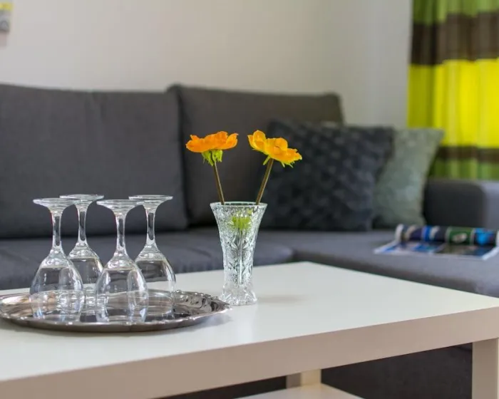 Ovaj klimatizovani apartman ima potpuno opremljenu kuhinju sa velikim frižiderom i staklokeramičkim šporetom. Takođe ima privatni balkon.