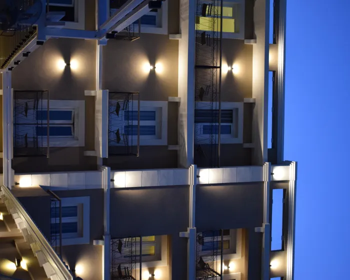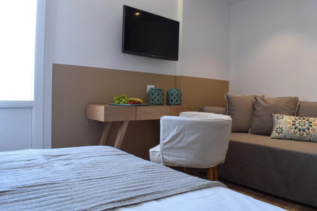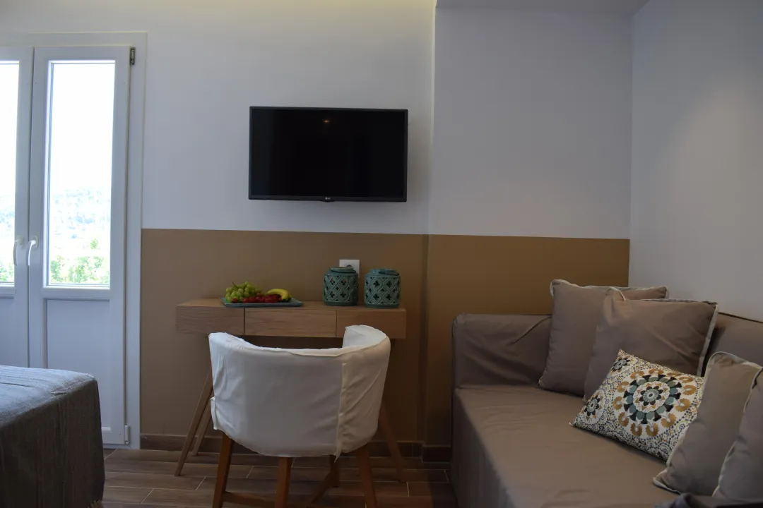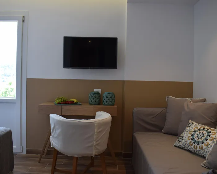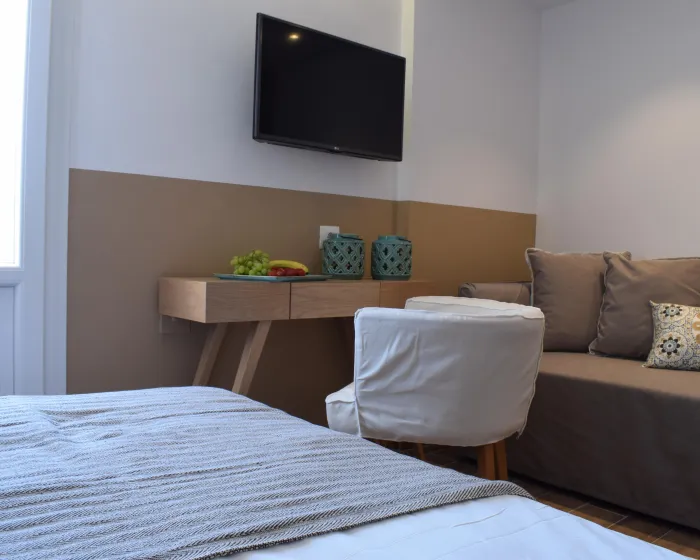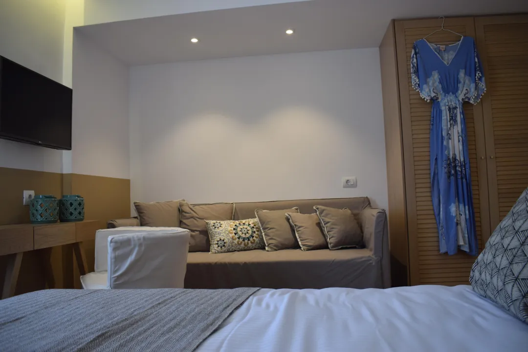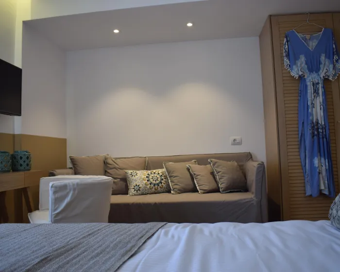 Klima uređaj i centralno grejanje osiguravaju da sobe održavaju udobne temperature. Gosti mogu da se opuste i uživaju u pogledu na more sa balkona ili privatne terase nekih soba. Sobe imaju bračni krevet i sofu na razvlačenje. Gosti mogu bezbedno čuvati svoje dragocenosti u sefu. Gosti će takođe pronaći frižider među standardnim sadržajima. Opremljene telefonom, TV-om, alarmom i WiFi-jem (bez dodatne naplate), sobe pružaju mnoge načine za goste da ostanu povezani i zabavljaju se. Kupatila su opremljena tušem i uključuju fen za kosu. Za dodatnu udobnost u kupatilima, gostima se nude kozmetički proizvodi. Hotel ima porodične sobe i sobe za nepušače.