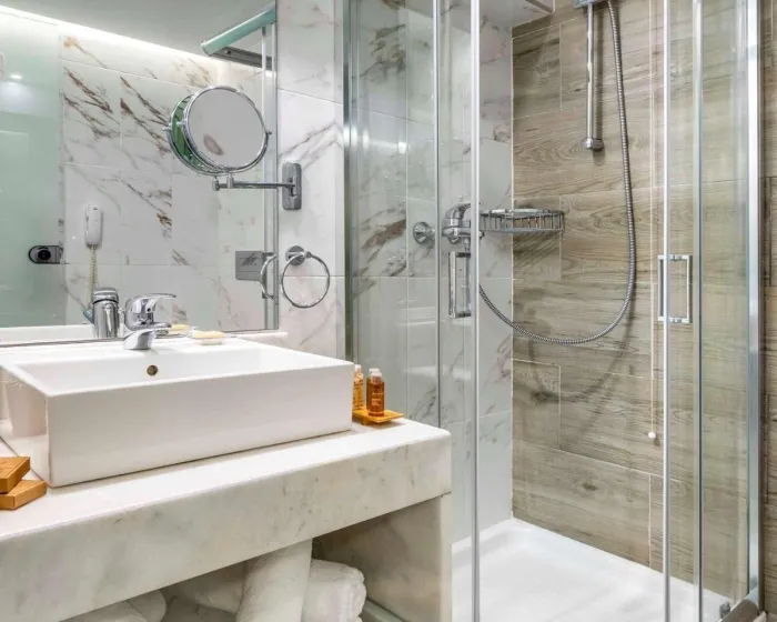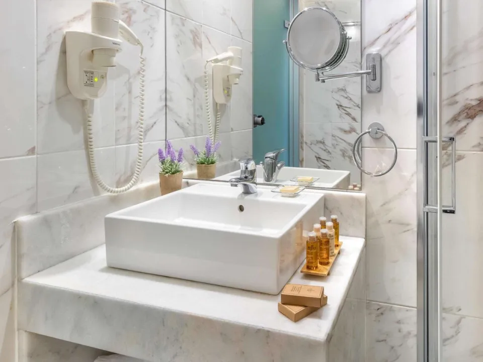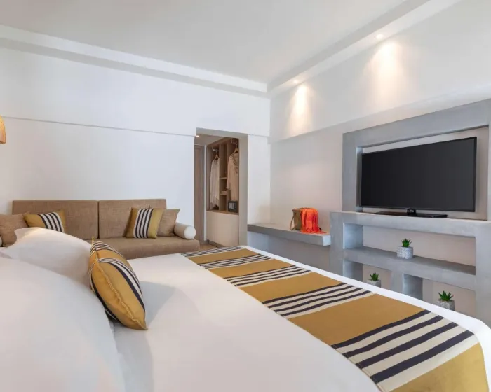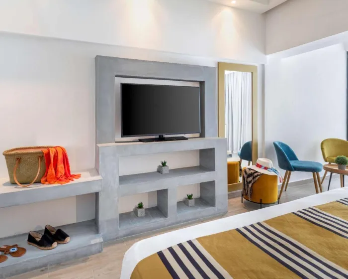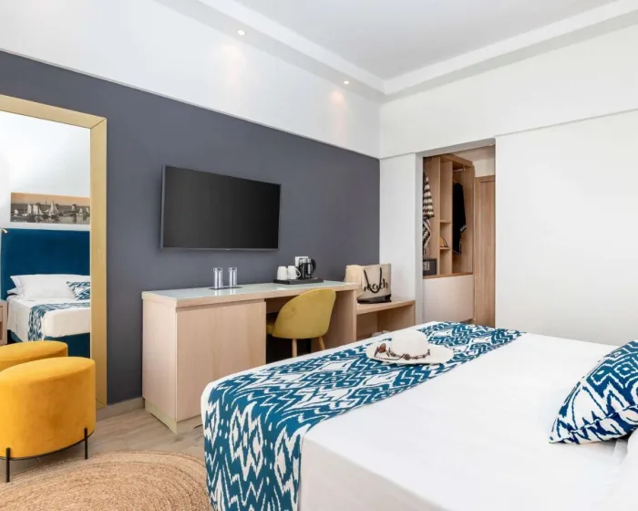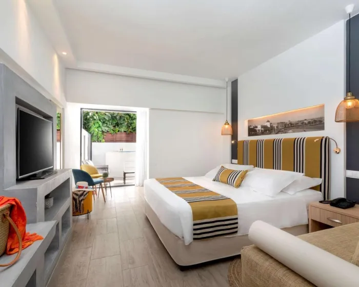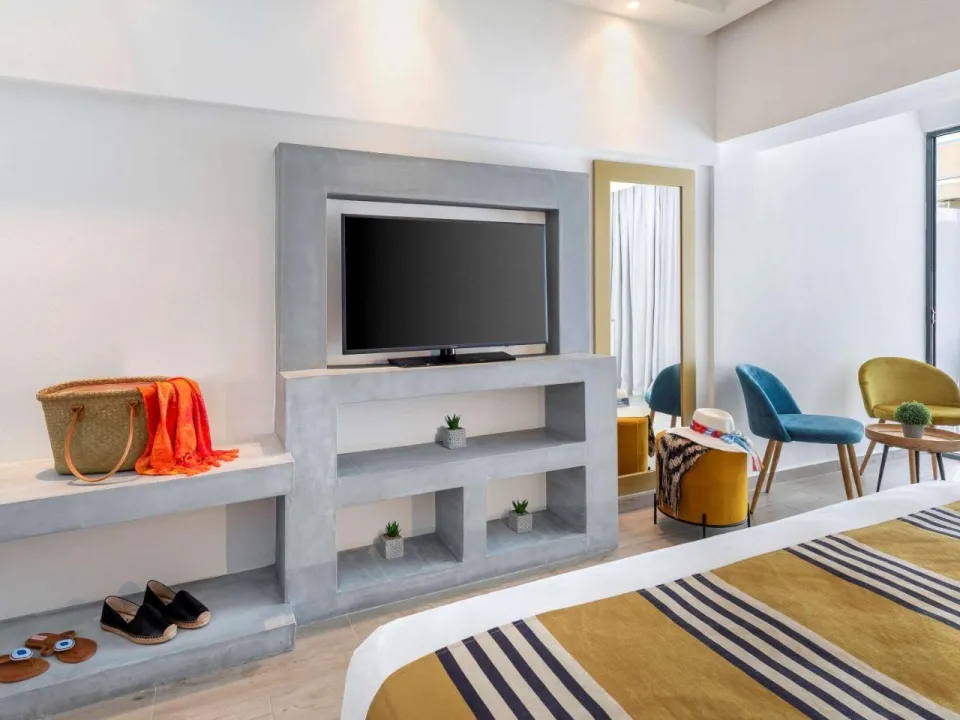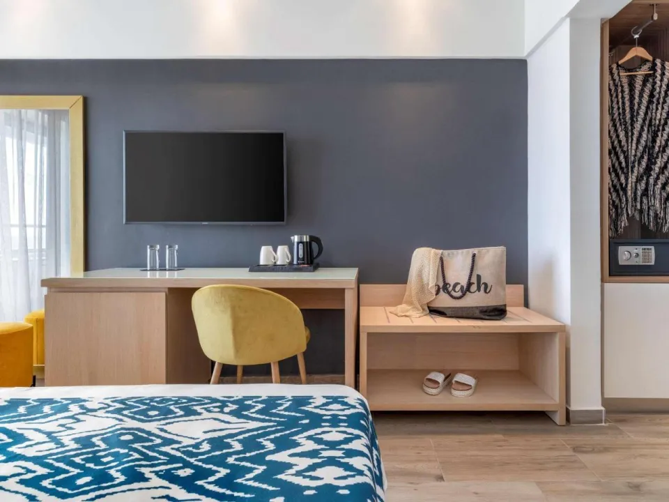 Klima uređaj i individualno podesivo grejanje obezbeđuju da sobe održavaju udobne temperature. Gosti mogu da se opuste i uživaju u pogledu na more sa balkona ili privatne terase nekih soba. Sobe imaju king-size krevet i sofu. Takođe, tu je i sef i radni sto ili, uz doplatu, mini bar. Kuhinjica dolazi sa frižiderom, mini frižiderom i aparatom za čaj/kafu. Direktno biranje telefona, televizor sa satelitskim/kablovskim kanalima, radio, CD plejer i WiFi (bez dodatne naknade) pružaju sve neophodno za udoban odmor. Papuče su uključene. Kupatila su opremljena tušem, kadom i đakuzijem. Fen za kosu i bade mantili su obezbeđeni. Mogu se rezervisati sobe pogodne za invalide. Hotel ima 135 soba za nepušače.