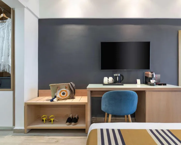 Hotel ima 65 studija, 5 jednokrevetnih soba i 65 dvokrevetnih soba, smeštenih na 6 spratova do kojih se može doći liftom. Recepcija je otvorena non-stop. Sadržaji uključuju uslugu čuvanja prtljaga, sef, menjačnicu i bankomat. Bežični internet omogućava gostima da ostanu povezani tokom odmora. Turistički biro nudi pomoć pri rezervisanju izleta. Postoje pristupačni sadržaji za osobe sa invaliditetom. Svakodnevne potrepštine mogu se kupiti u supermarketu. Vrt pruža dodatni prostor za odmor i opuštanje na otvorenom. Dodatni sadržaji uključuju prostoriju za TV i igraonicu. Gostima koji putuju automobilom na raspolaganju su parking mesta. Ostale usluge uključuju 24-časovnu obezbeđenost, uslugu iznajmljivanja automobila, medicinsku pomoć, poslugu u sobi, uslugu pranja veša, frizera, mesečevu perionicu i hotelskog lekara. Usluga iznajmljivanja bicikala daje gostima mogućnost da samostalno istražuju okolnu oblast. Fax mašina je dostupna za poslovne potrebe gostiju.