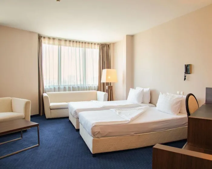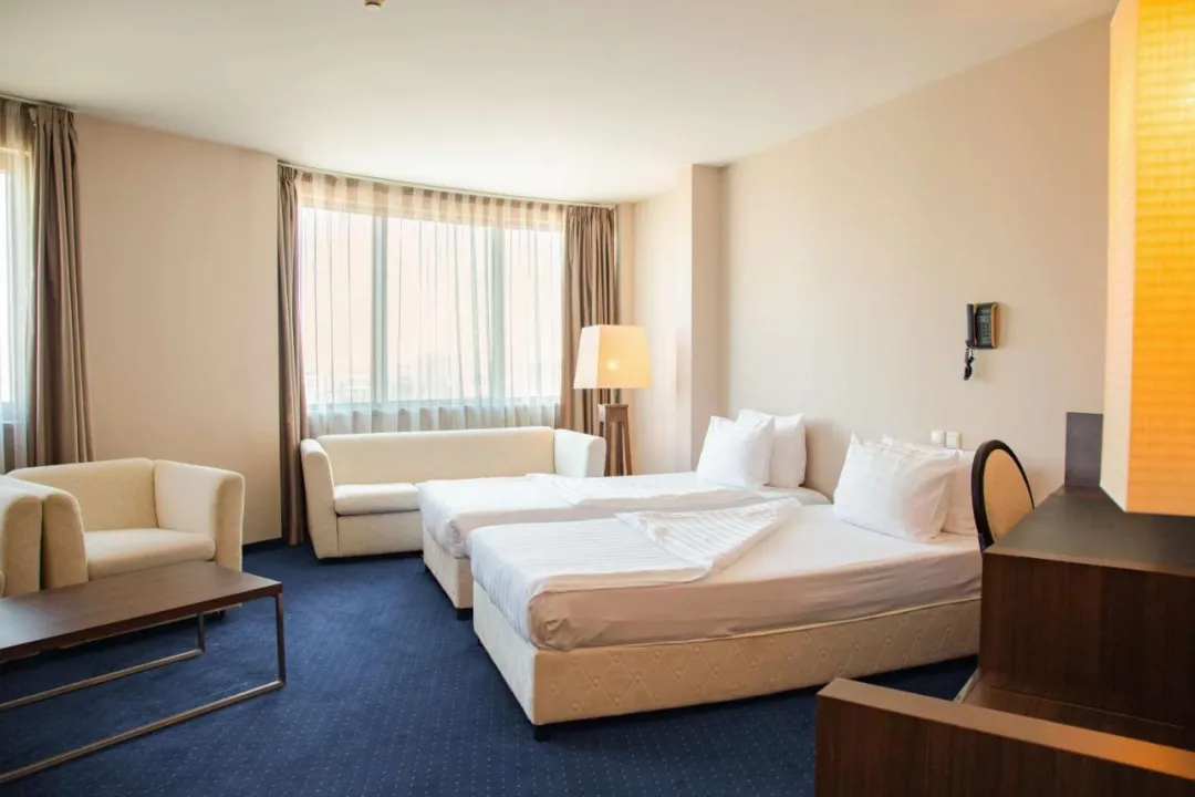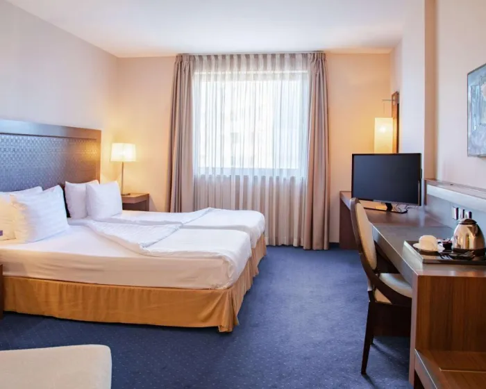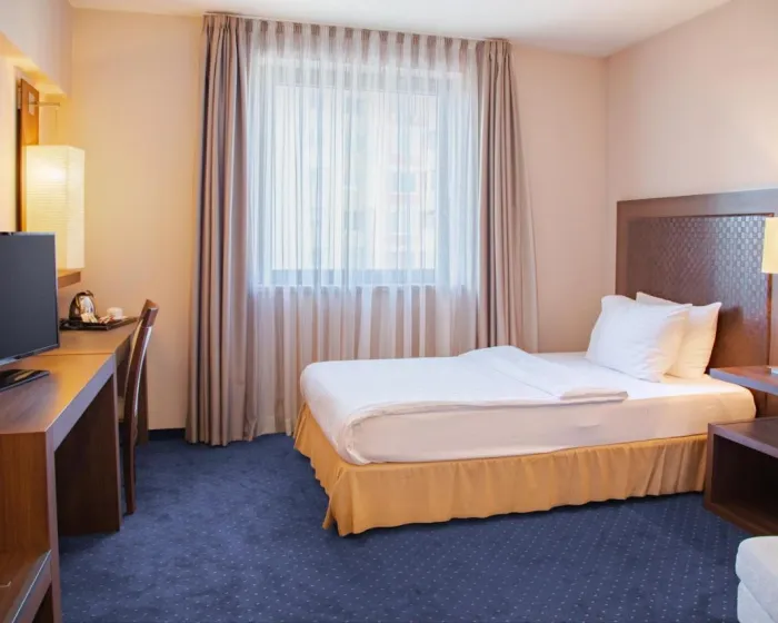 Sobe su opremljene klima uređajem i centralnim grejanjem. Gosti mogu uživati u pogledu na grad sa balkona ili terase. Sve sobe su popločane i uključuju bračni krevet ili king-size krevet. Na raspolaganju su i sef i radni sto. Dodatne pogodnosti uključuju mini frižider i aparat za kafu/čaj. Takođe su obezbeđeni direktno biranje telefona, televizor sa satelitskim/kablovskim kanalima i WiFi. Papuče su uključene. Kupatila su opremljena tušem i kadom. Dostupni su fen za kosu, bade mantili i telefon. Kozmetički proizvodi i izbor peškira pružaju dodatnu udobnost u kupatilima. Mogu se rezervisati sobe prilagođene za osobe u invalidskim kolicima. Hotel ima porodične sobe i sobe za nepušače.