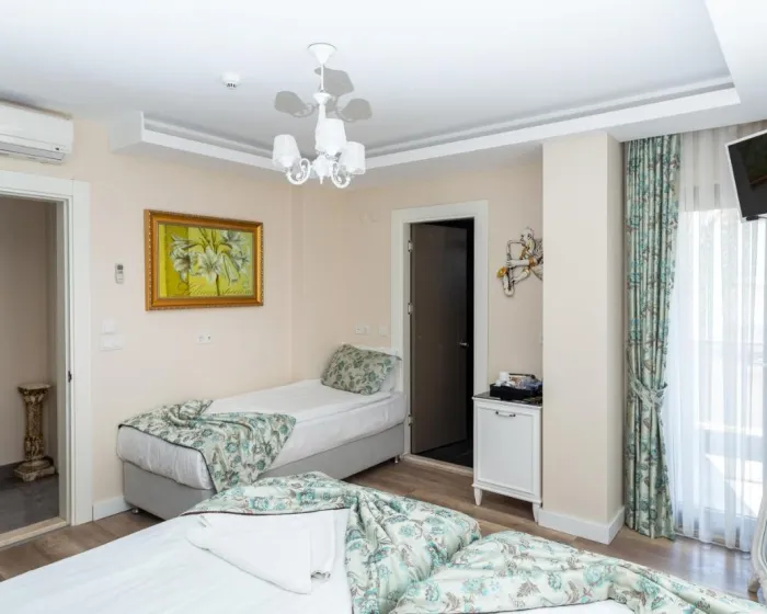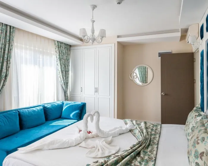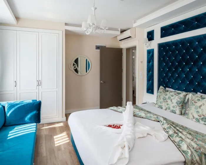 Sobe su opremljene klima uređajem. Gosti mogu da se opuste i uživaju u pogledu na more sa balkona ili privatne terase nekih soba. Sobe imaju bračni krevet, krevet queen-size, krevet king-size ili sofu na razvlačenje. Dodatni kreveti mogu biti zatraženi. Sef i minibar su takođe dostupni. Takođe su obezbeđeni telefon, satelitska televizija i WiFi. Papuče su uključene. Kupatila su opremljena tušem i đakuzijem. Fen za kosu, bade mantili i telefon su dostupni za svakodnevnu upotrebu. Hotel ima porodične sobe i sobe za nepušače.