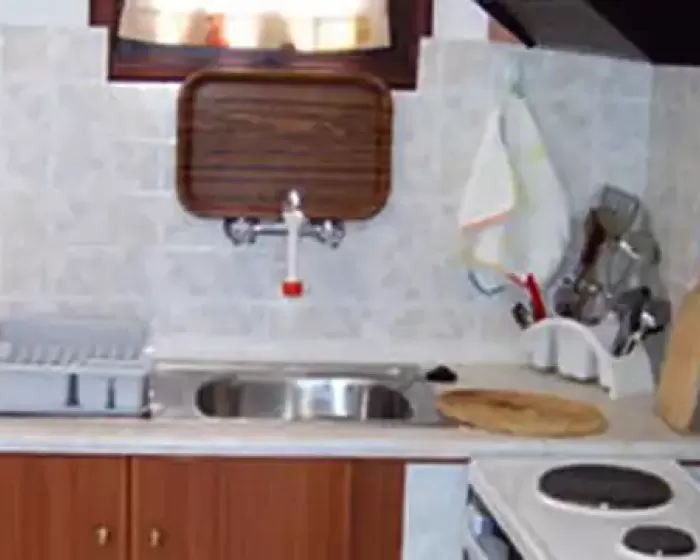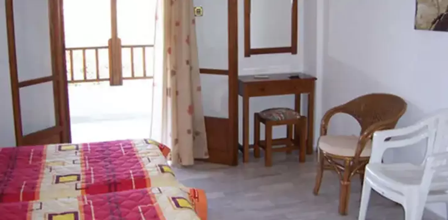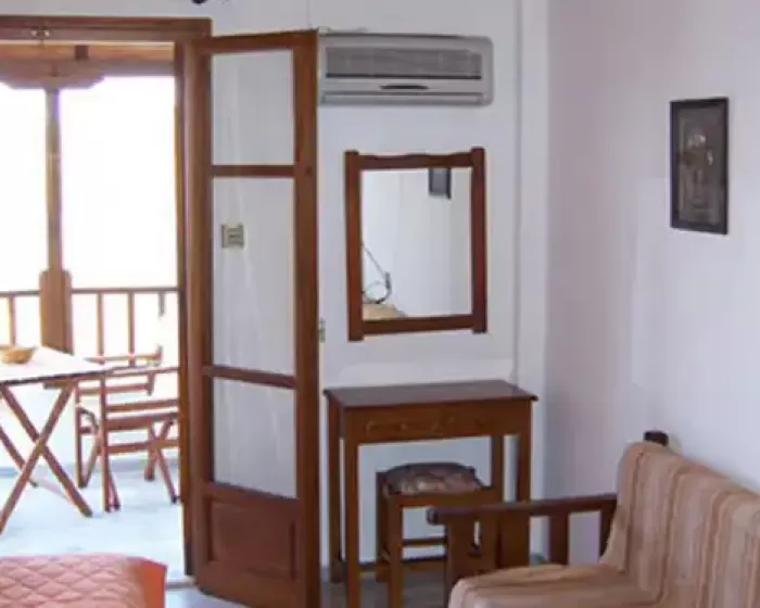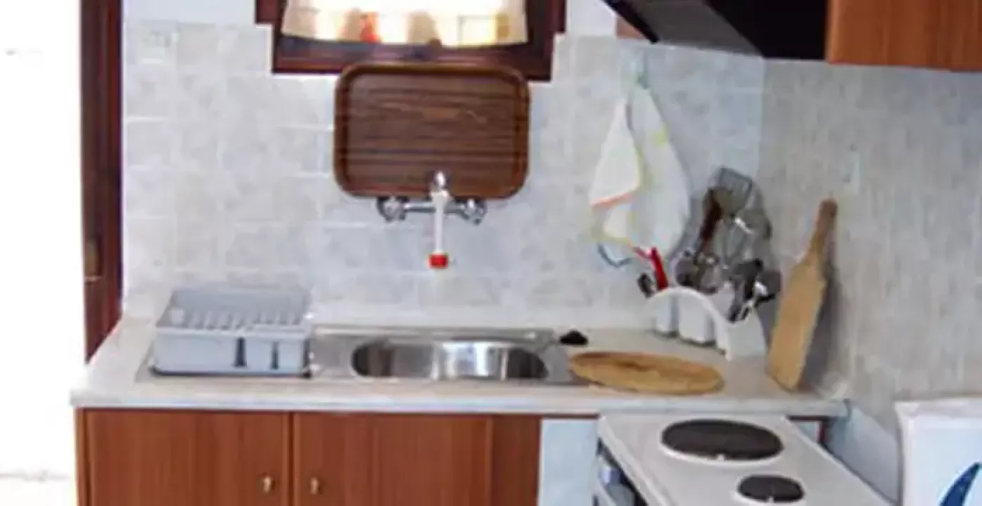 Tip smeštaja:1/2 garsonjera SV - u jednoj prostoriji opremljena mini kuhinja, u drugoj dva obična ležaja.1/3 garsonjera SV - u jednoj prostoriji opremljena mini kuhinja, u drugoj bračni i običan ležaj.U pojedinim slučajevima moguća su odstupanja mera ležaja od našeg standarda. Grčki standard za ležaj je 185 cm sa 75-80 cm, a bračni ležaj (dve osobe) 185-200 cm sa 120-155 cm.