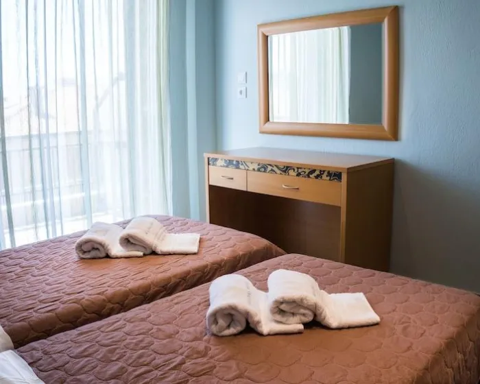 Sve sobe imaju klima uređaj i centralno grejanje. U pojedinim sobama gosti mogu uživati u pogledu na more sa balkona ili privatne terase. Sobe su opremljene francuskim ili king-size ležajem, a na zahtev su dostupni dodatni ležajevi. Standardna oprema uključuje frižider. Na raspolaganju su i telefon, televizor i bežični internet bez doplate. Kupatila nude izbor peškira kao dodatnu pogodnost. Objekat raspolaže porodičnim i sobama za nepušače.