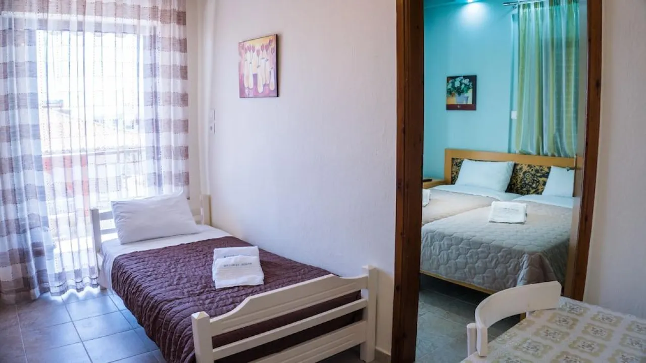 Milonas House Dionisiou se nalazi u mestu Paralija Dionisiou, odmah do uređene plaže ovog porodičnog letovališta. Ljubazno osoblje koje govori engleski jezik rado će pomoći gostima i pružiti potrebne informacije. Gostima su na raspolaganju ostava za prtljag i bežični internet koji omogućava povezivanje tokom boravka. Turistički desk pruža pomoć pri organizaciji izleta. Uređeni vrt nudi dodatni prostor za odmor i uživanje na otvorenom. Dodatni sadržaji uključuju TV salu. Gosti koji dolaze automobilom mogu koristiti garažu (uz doplatu) ili besplatan parking. Od dodatnih usluga na raspolaganju su obezbeđenje 24h, iznajmljivanje automobila, transfer usluga, posluga u sobi, usluga pranja veša i samouslužna perionica. Aktivnim gostima je omogućeno iznajmljivanje bicikala, a postoji i prostor za njihovo odlaganje.