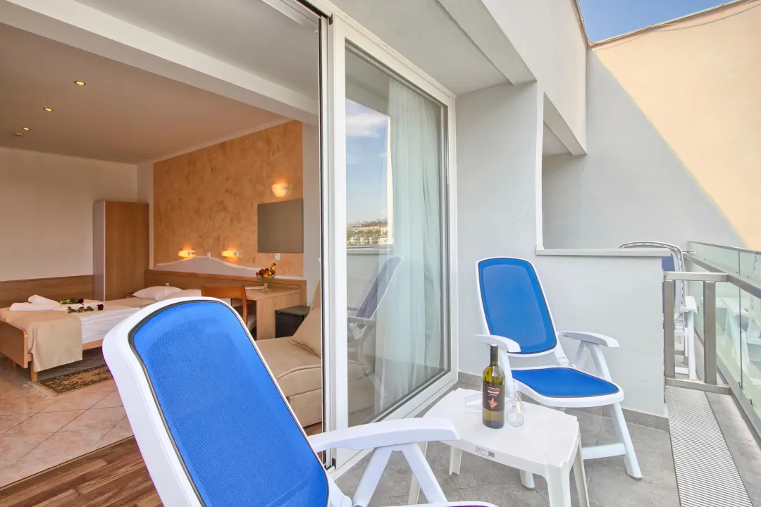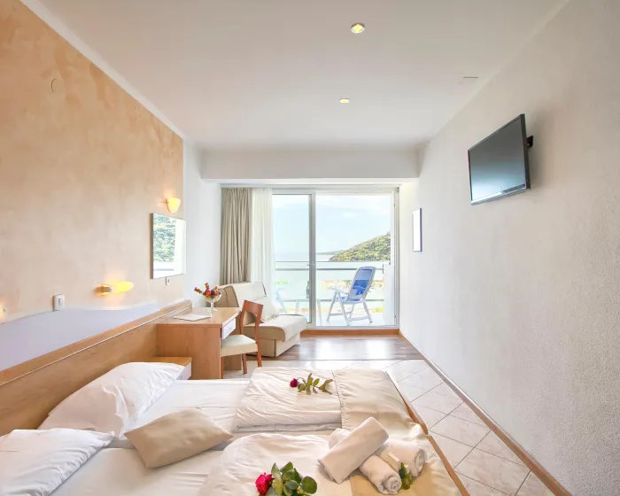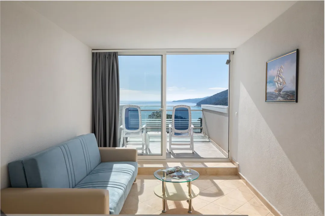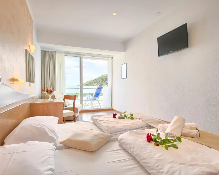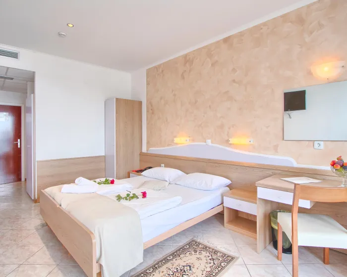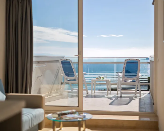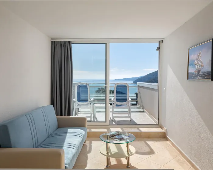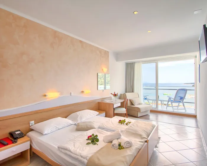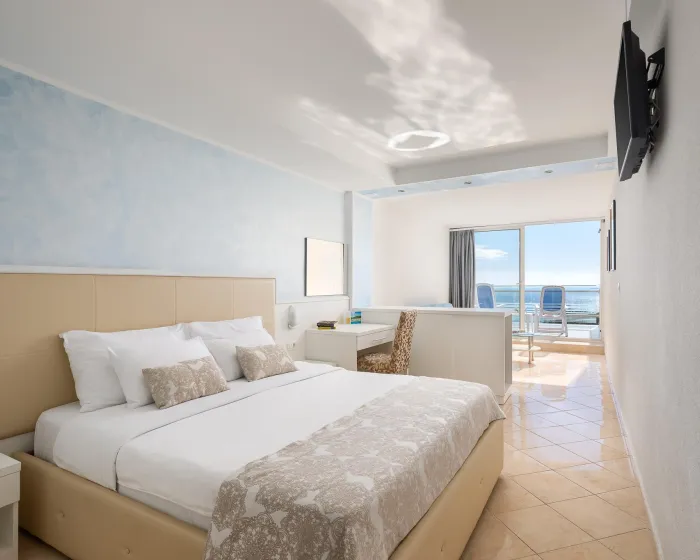 Klima uređaj i centralno grejanje garantuju da sobe održavaju prijatnu temperaturu. Gosti mogu uživati u pogledu na more sa balkona ili terase. Sobe imaju bračni krevet ili sofu. Kreveti za decu i pomoćni kreveti mogu se zatražiti za mlađe goste. Na raspolaganju su sef i radni sto. Dodatne pogodnosti uključuju frižider i aparatom za kafu/čaj. Telefon, TV, radio i WiFi (bez dodatne naplate) pružaju sve neophodno za udoban odmor. Kupatila su opremljena tušem i kadom. Fen za kosu, bade mantili i telefon su dostupni za svakodnevnu upotrebu. Hotel ima porodične sobe i sobe za nepušače.