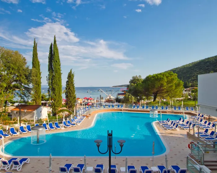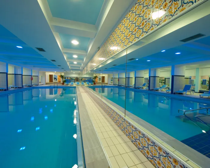 Zatvoreni i otvoreni bazeni, zagrejani i napunjeni slanom vodom, omogućavaju udobno plivanje. Tu je i bazen za decu. Kratkog predaha ili celog popodneva na suncem okupanoj terasi, koja ima ležaljke i suncobrane, je vreme dobro provedeno. Veliki izbor aktivnosti koje su dostupne u hotelu garantuje da će svakog dana biti nešto novo za raditi, uključujući vožnju biciklom/brdski biciklizam, tenis, ludu golf i ribolov. Ljubitelji vodenih sportova mogu uživati u ronjenju i ronjenju. Sportske i zabavne sadržaje u hotelu uključuju teretanu i stoni tenis. Različite wellness opcije su dostupne u hotelu, uključujući spa centar, saunu, tretmane masaže i solarijum. Hotel ima nekoliko zabavnih sadržaja, uključujući zabavni program, dečiji klub, dečiji disko i živu muziku. Obroci