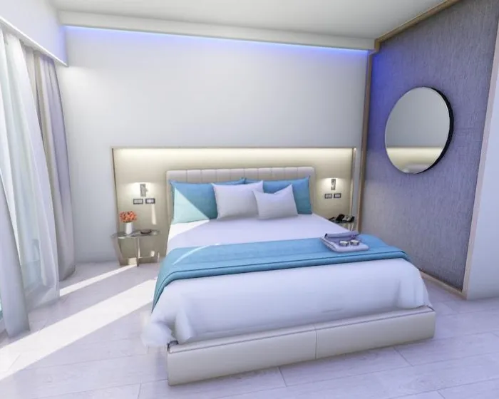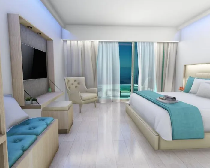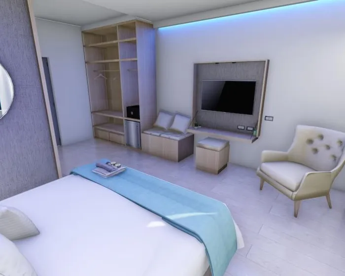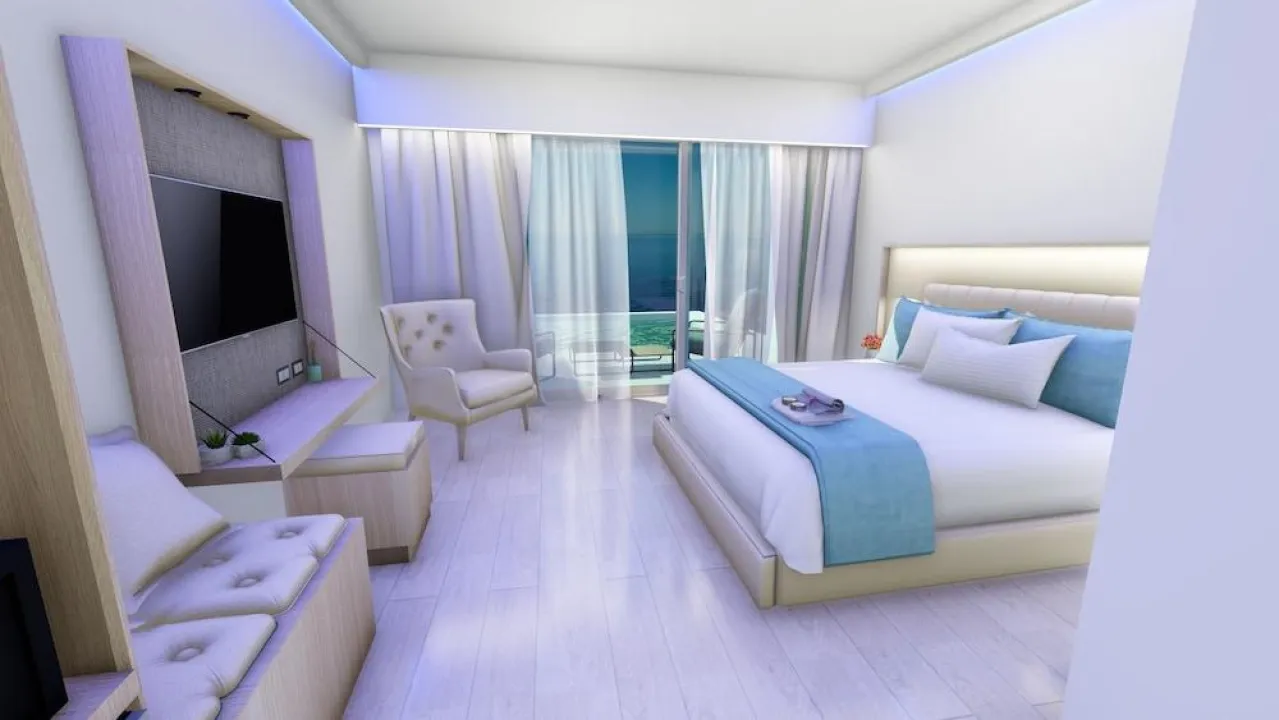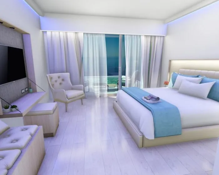 Klima uređaj, centralno grejanje i ventilator osiguravaju da sobe održavaju udobne temperature. Gosti mogu uživati u pogledu na more sa balkona ili terase. Sobe uključuju bračni krevet. Dostupne su odvojene spavaće sobe. Za mlade goste mogu se zatražiti dečiji krevetići. Takođe su dostupni sef, minibar i radni sto. Dodatne opcije uključuju frižider, mini frižider i aparat za kafu/čaj. Takođe su dostupni set za peglanje i preša za pantalone. Telefon, satelitska televizija, radio i WiFi obezbeđuju sve neophodno za udoban odmor. Papuče su uključene. Kupatila su opremljena tušem i kadom. Sušilo za kosu, ogledalo za šminkanje, bade mantili i telefon su obezbeđeni. Hotel ima sobe za nepušače.
