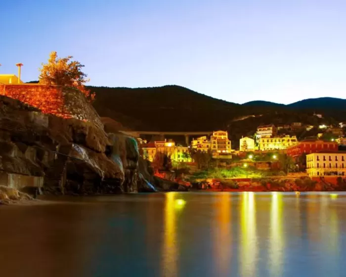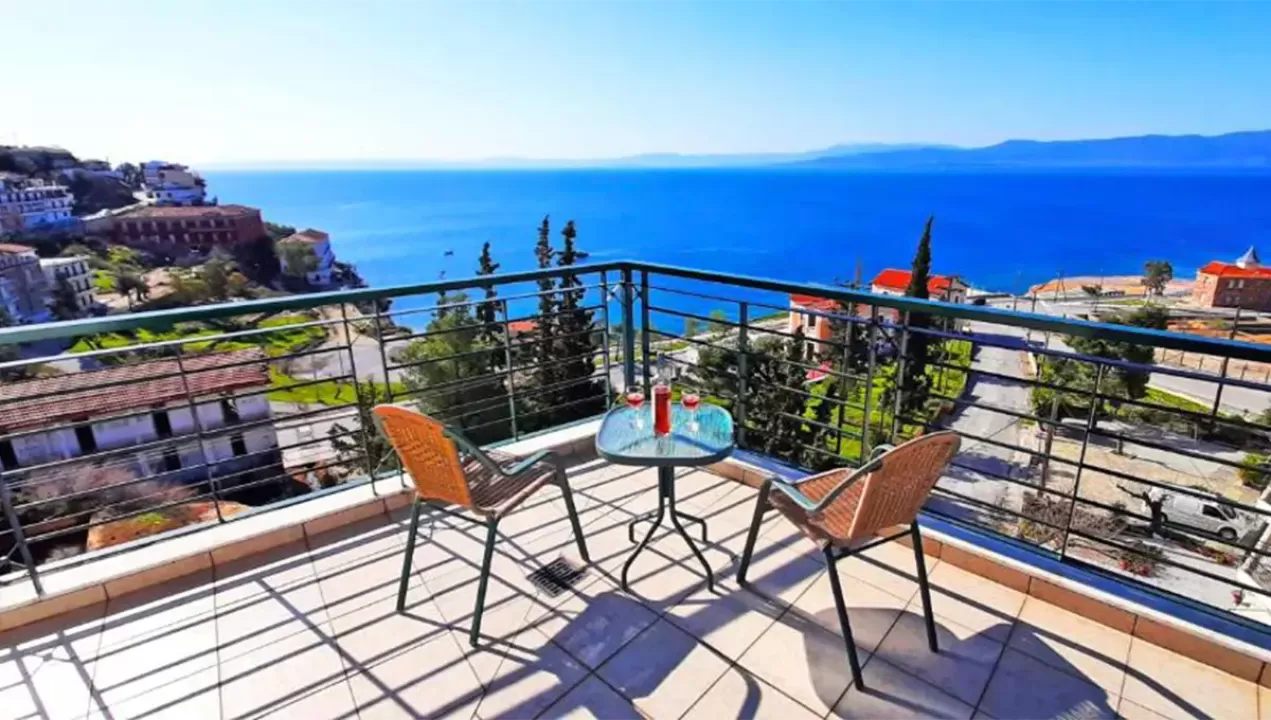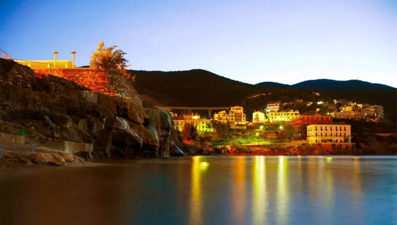 Mitho Hotel Spa Edipsos se nalazi odmah do termalnih izvora i banje Edipsosa, na ostrvu Evia. Od obale je udaljen oko 130 metara, pozicioniran na uzvišici sa koje se pruža panoramski pogled na grad i zaliv. Kako se nalazi na samo 70 metara udaljenosti odd termalnih izvora, prvi je izbor turista koji žele smeštaj u neposrednoj blizini banje. Od glavne luke Edipsosa hotel Mitho Spa je udaljen oko 500 metara.